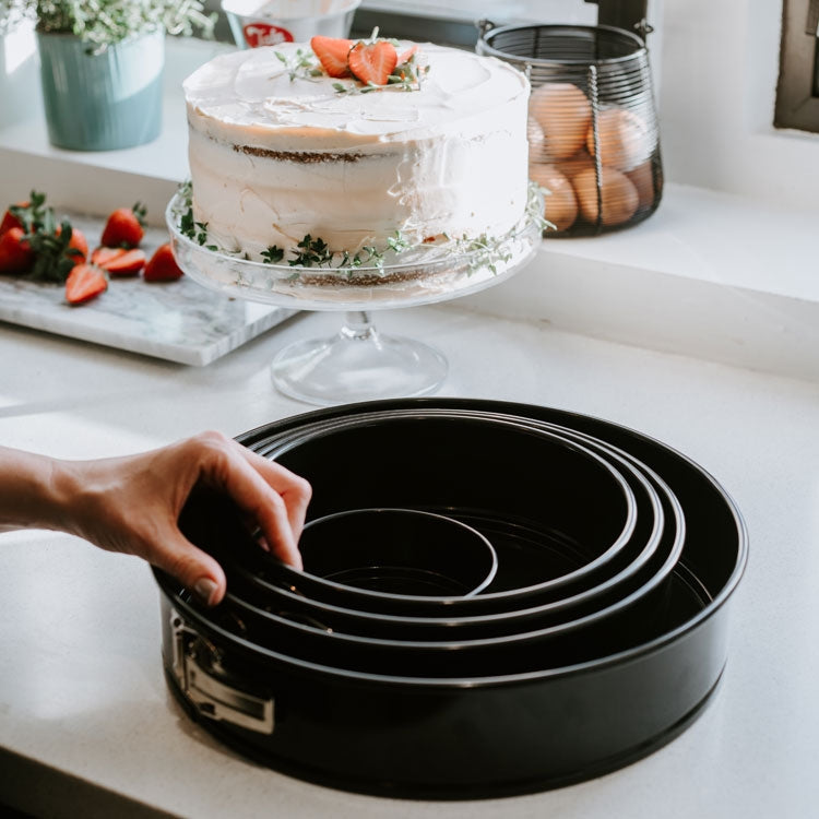 De springvorm van Tala gaat al jouw bakavonturen aan! Met deze diepe springvorm maak jij heerlijke cheesecakes, goedgevulde fruittaarten, luchtige droomtaarten, onweerstaanbare quiches en nog véél meer. De duurzame springvorm is gemaakt van hoogwaardig koolstofstaal en zorgt voor een egale warmtegeleiding over de hele vorm. Dankzij de dubbele anti-aanbaklaag en krachtige springvormmechanisme haal jij de taart snel en eenvoudig uit de vorm zónder ongelukjes. De BPA- en PFOA-vrije springvorm is veilig in gebruik met metalen keukengerei én geschikt voor in de vaatwasser, koelkast, vriezer en oven.