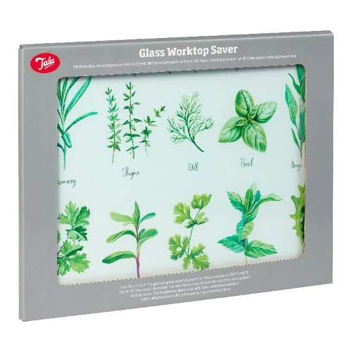 Werkblad Beschermer, Glas, 30 x 40 cm - Tala Met behulp van deze glazen werkblad beschermer van Tala houd je je keuken eenvoudig mooi en opgeruimd. Het werkblad heeft een afmeting van 30 x 40 centimeter en is ideaal om groenten, fruit en meer op te serveren door het geharde glas. Het werkblad beschermt je tafel en aanrecht tegen vuil en krassen, doordat het werkblad ook hittebestendig is kan je er ook je warme bekers of borden op kwijt zonder dat het werkblad beschadigd. Door de rubberen voetjes blijft de plank goed op zijn plek liggen. Daarnaast is dit werkblad afgewerkt met een prachtige afbeelding waarmee je je keuken- en tafelsetting gegarandeerd opfleurt! Het wordt aangeraden om het glazen werkblad met de hand af te wassen om er zo lang mogelijk plezier van te hebben. Pluspunten: