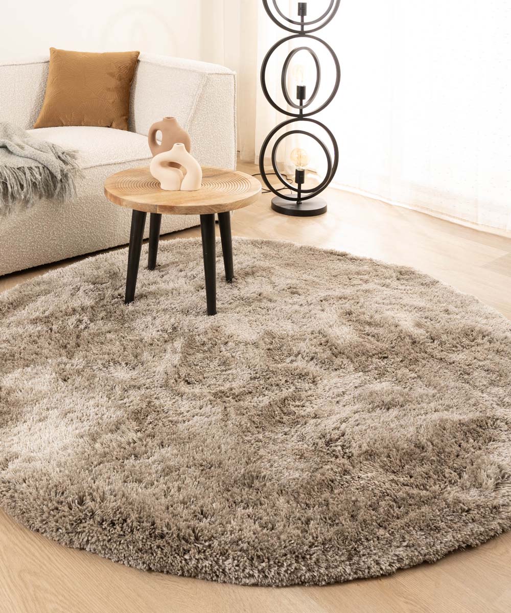 Tapeso Rond shaggy vloerkleed - Meadow grijs - 300 cm