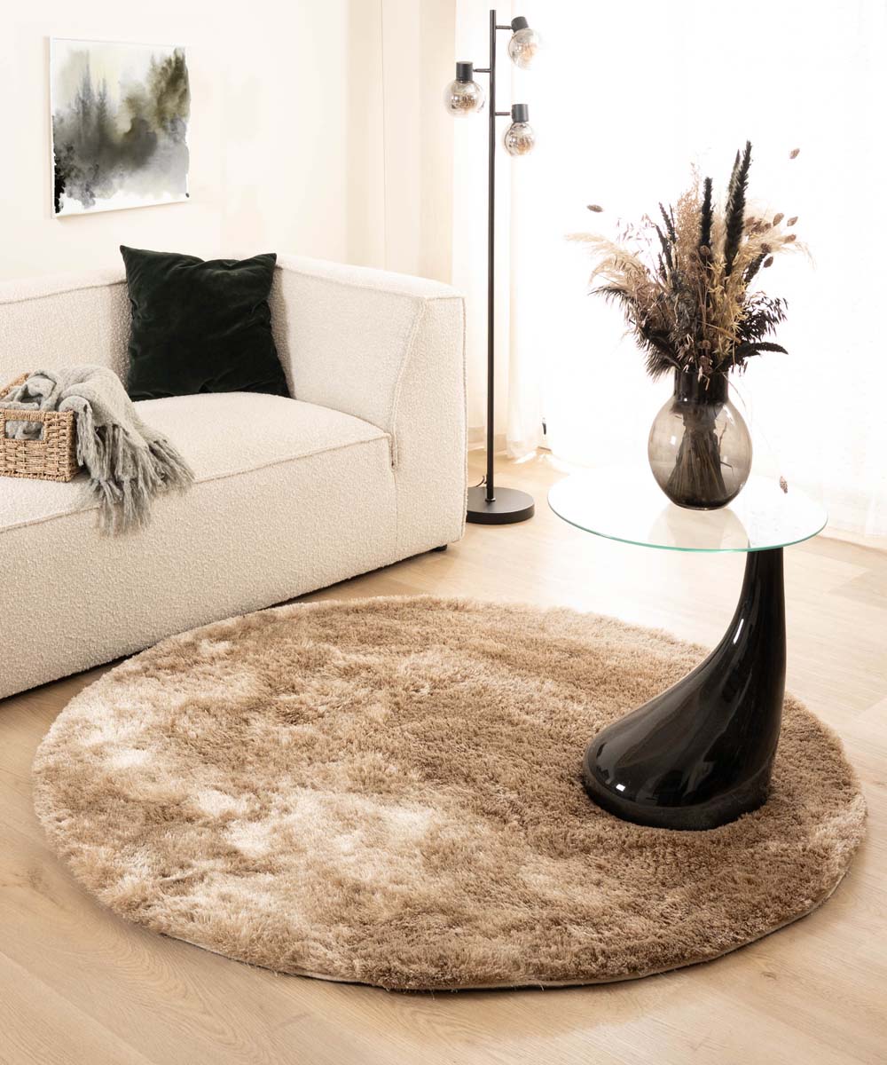 Tapeso Rond shaggy vloerkleed - Spark beige - 300 cm