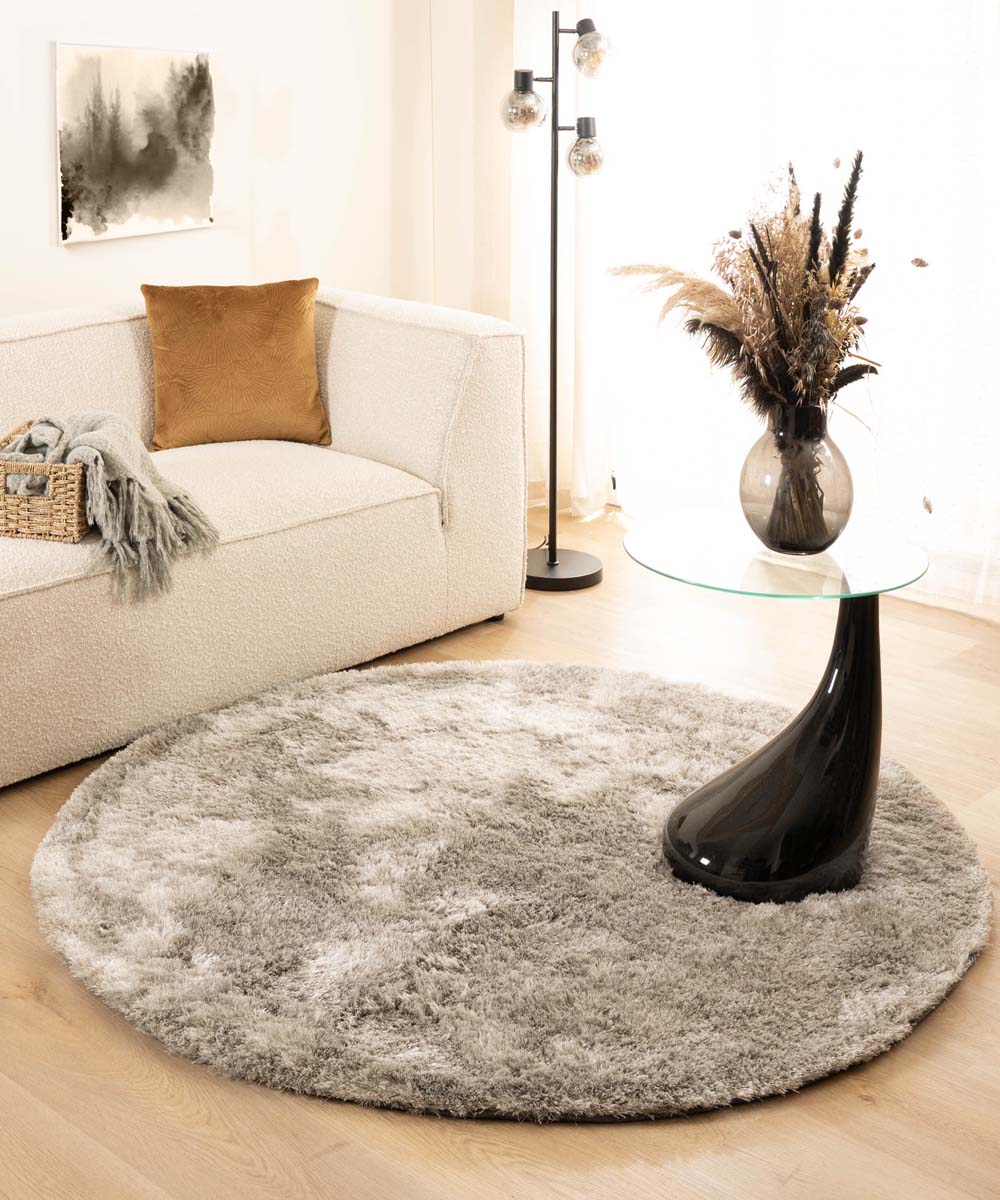 Tapeso Rond shaggy vloerkleed - Spark zilver - 250 cm