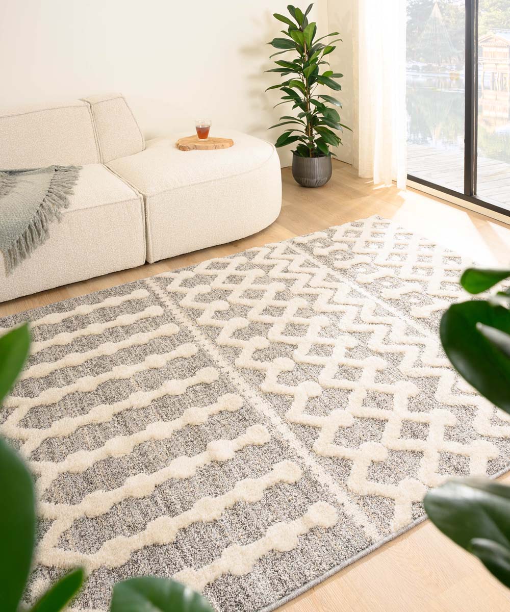 Tapeso Scandinavisch vloerkleed - Fjord Dagg grijs|crème - 200x290 cm