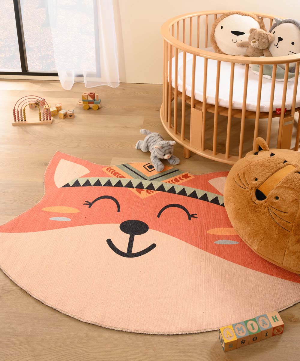 Breng een vleugje charme en speelsheid in de kinderkamer met het op maat gesneden vloerkleed vos uit de Smile collectie van Amiah. Dit betoverende kleed stimuleert de verbeelding en biedt een comfortabele ondergrond om op te spelen. Het kleed is wasbaar op 30 graden, waardoor het gemakkelijk schoon te houden is, zelfs in een levendige kinderkamer.