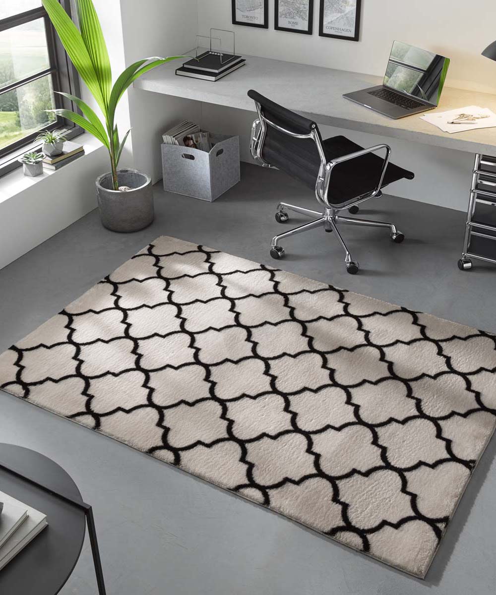 Tapeso Wasbaar vloerkleed - Trellis wit|zwart - 160x230 cm