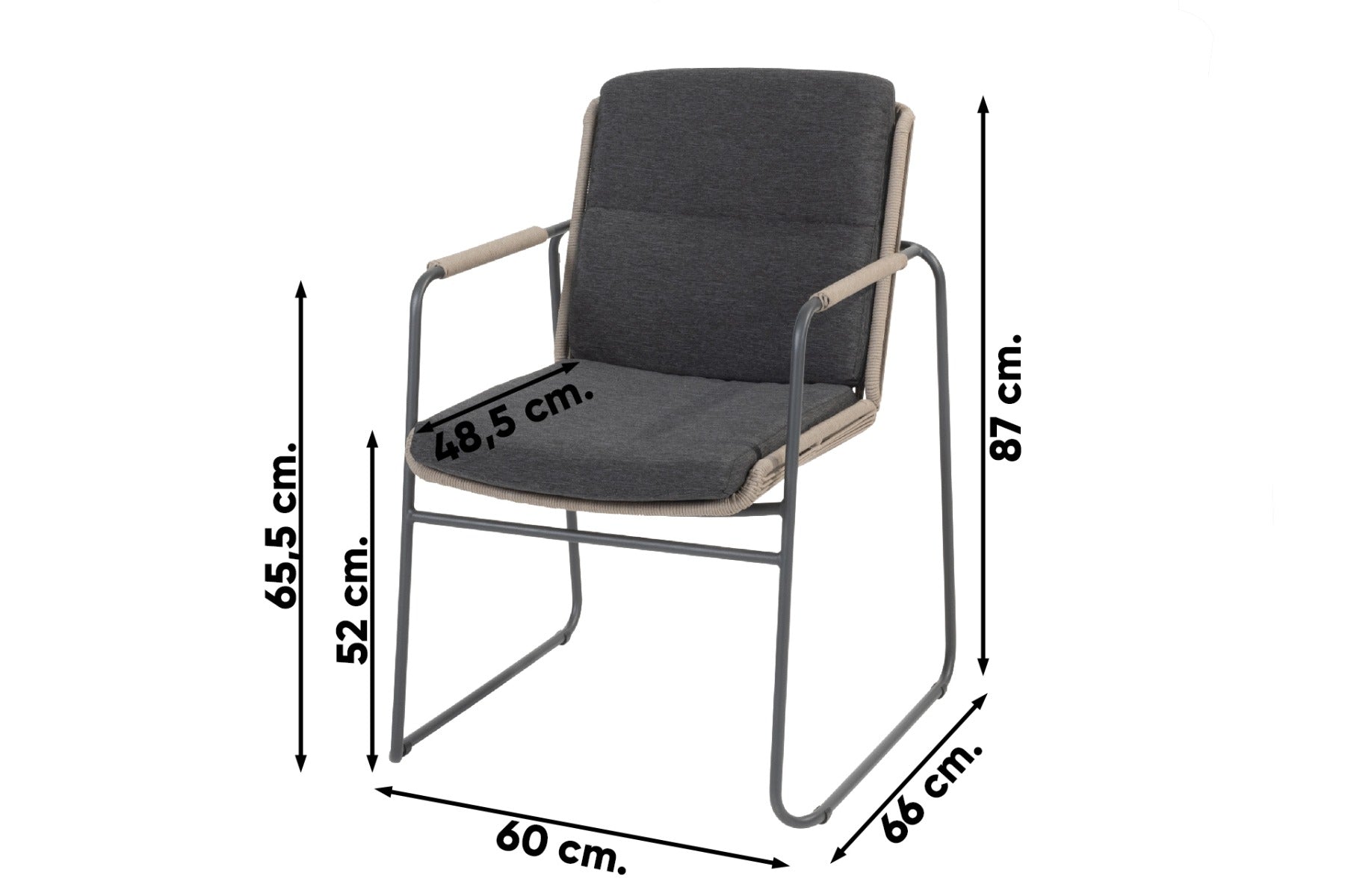 Deze tuinstoel heeft een prachtige zachte kleur in het design met antraciet kleurige kussens. Hierdoor is deze stoel direct een prachtige eyecatcher voor aan je tuintafel.
