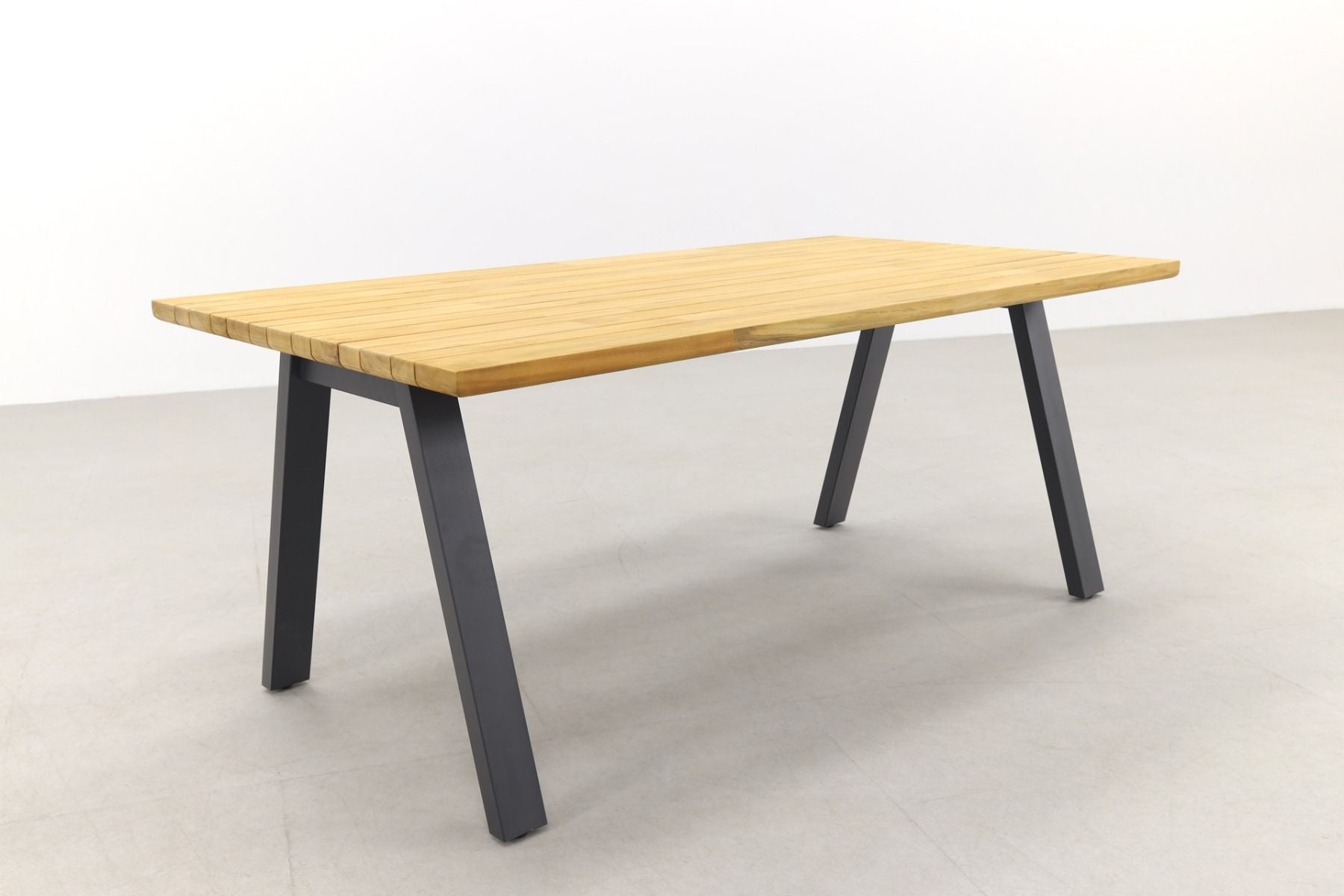 De Ambassador tuintafel van Taste heeft een teakhouten blad. Teak hout is een harde houtsoort en daarmee perfect geschikt voor het gebruik in tuintafels. Teakhout zal na verloop van tijd gaan verkleuren en haarscheurtjes gaan vertonen. Dit is niet erg want het maakt de tafel juist nog stoerder. Mocht je de voorkeur hebben om de originele kleur te behouden van het teakhout. Dan adviseren wij om de tafel te behandelen met een protector. Deze kun je eenvoudig mee bestellen in de voordeelbundel. Om vlekken te voorkomen kun je de Ambassador tafel ook behandelen met een teak shield. Dit onderhoudsmiddel zorgt er tevens voor dat het tafelblad water- en vuilafstotend is. Let op dat je de teak tuintafel nooit afdekt met een hoes. Wanneer het tafelblad volledig afgesloten wordt kan het niet “ademen” en kunnen er lelijke vlekken ontstaan.
