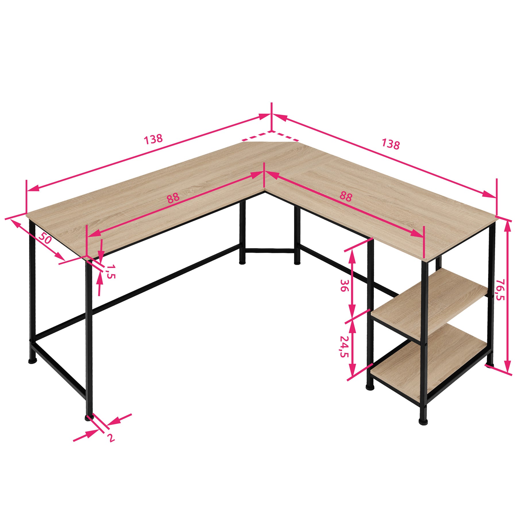 - Diepte van het bureaublad: ca. 50 cm