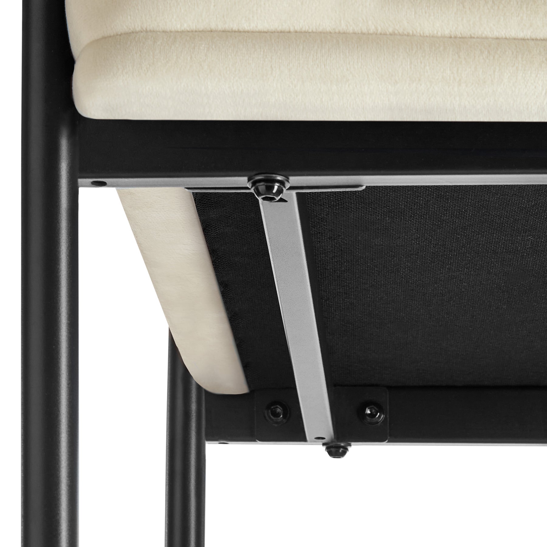 De bekleding van fluweelzachte stof geeft de stoel een aangename textuur en is uiterst onderhoudsvriendelijk. Dankzij de slanke, gepoedercoate stalen poten overtuigt de gestoffeerde stoel bovendien met een uitstekende stabiliteit en draagkracht. De vloerbeschermende en antislip kunststofdoppen bieden daarbij de hoogste stabiliteit op elke ondergrond. Dankzij de eenvoudige constructie is de montage in slechts enkele minuten voltooid!