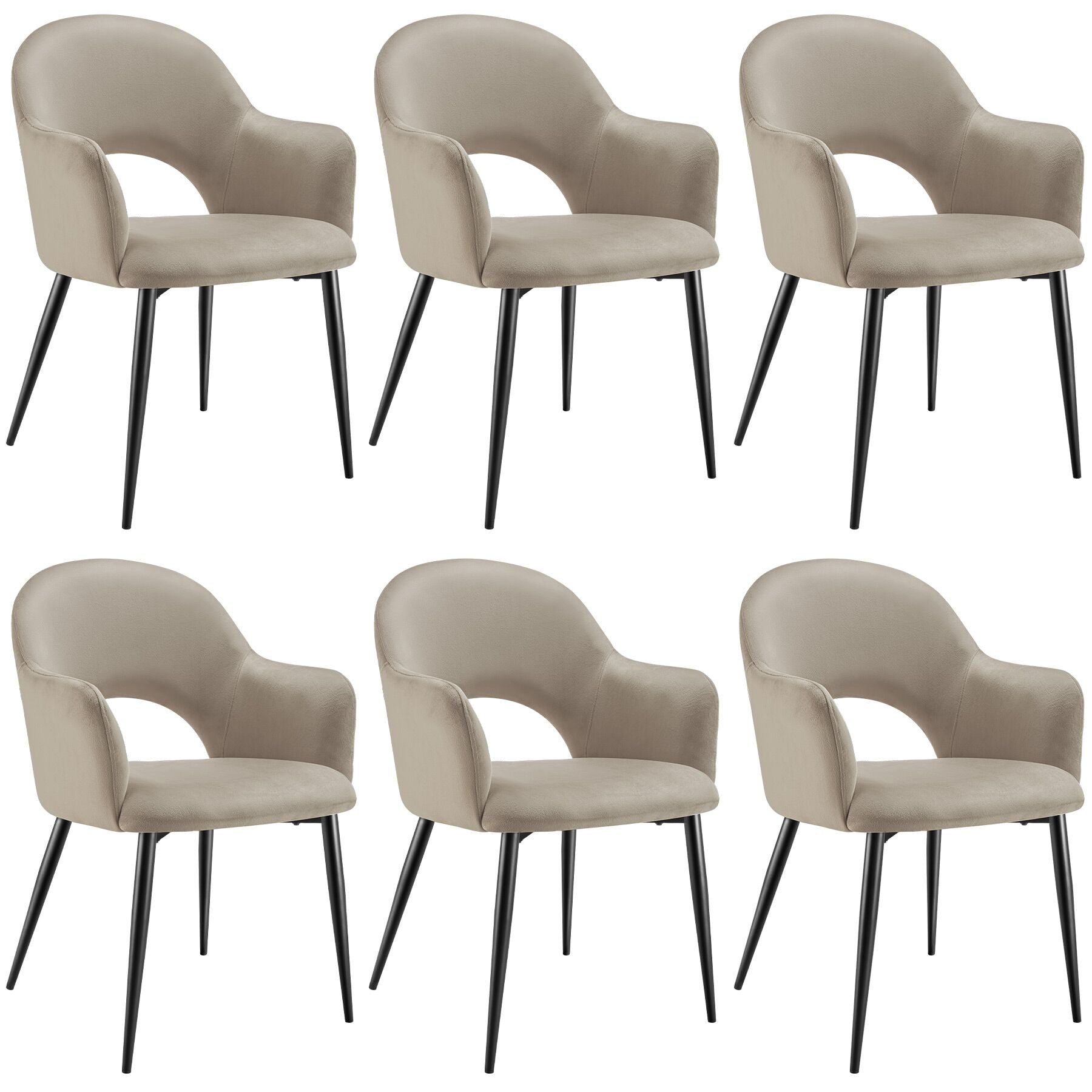 De stijlvolle eetkamerstoelen Sachel van tectake in de compacte 6-delige set overtuigen over de hele lijn door hun stijlvolle uitstraling en eersteklas comfort. De hoge, halfronde rugleuningen en de zachte zitschalen bieden niet alleen een visueel hoogtepunt, maar ook een ergonomisch design dat zich perfect aan jouw lichaam aanpast. Ideaal voor jouw eetkamer of woonkamer – deze armleunstoelen geven elke ruimte een luxueus accent.