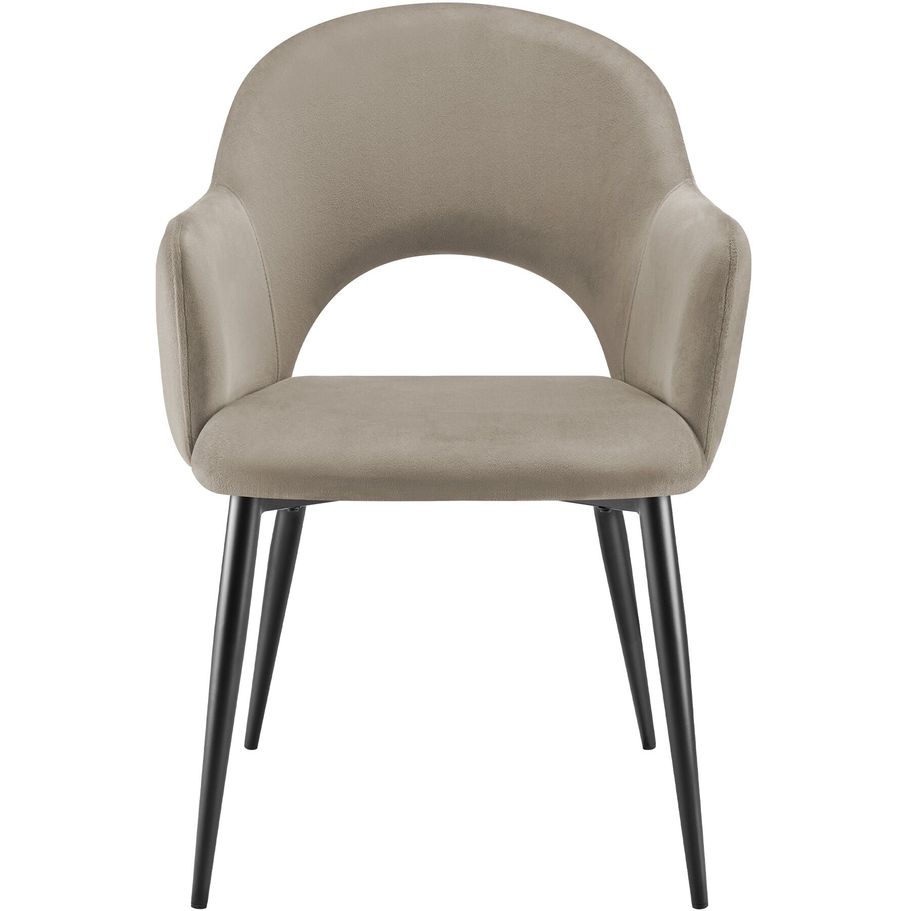De zitschalen van de fauteuils overtuigen met een edele combinatie van beklede armleuningen en een zacht gebogen rugleuning. De combinatie met de fluweelzachte bekleding geeft de stoelen niet alleen een bijzondere elegantie, maar ook een uiterst aangenaam zitgevoel. Extra comfort biedt de comfortabele bekleding met een vulling van hoogwaardig schuim, die uitnodigt tot lange, gezellige uren aan de eettafel.