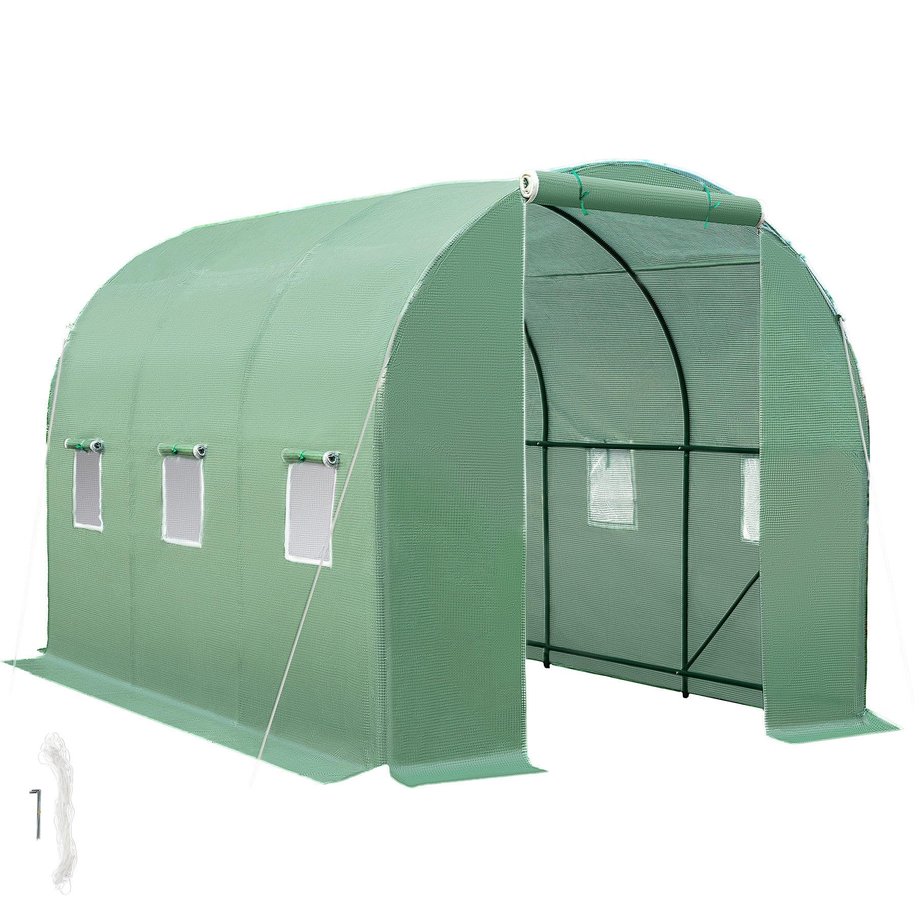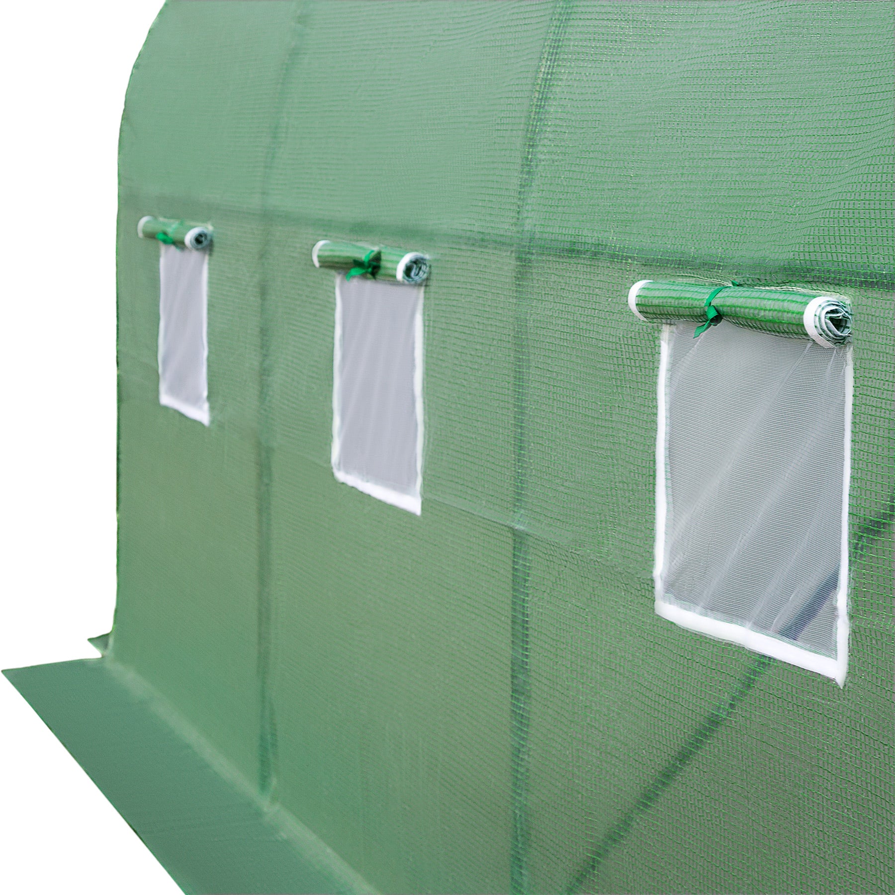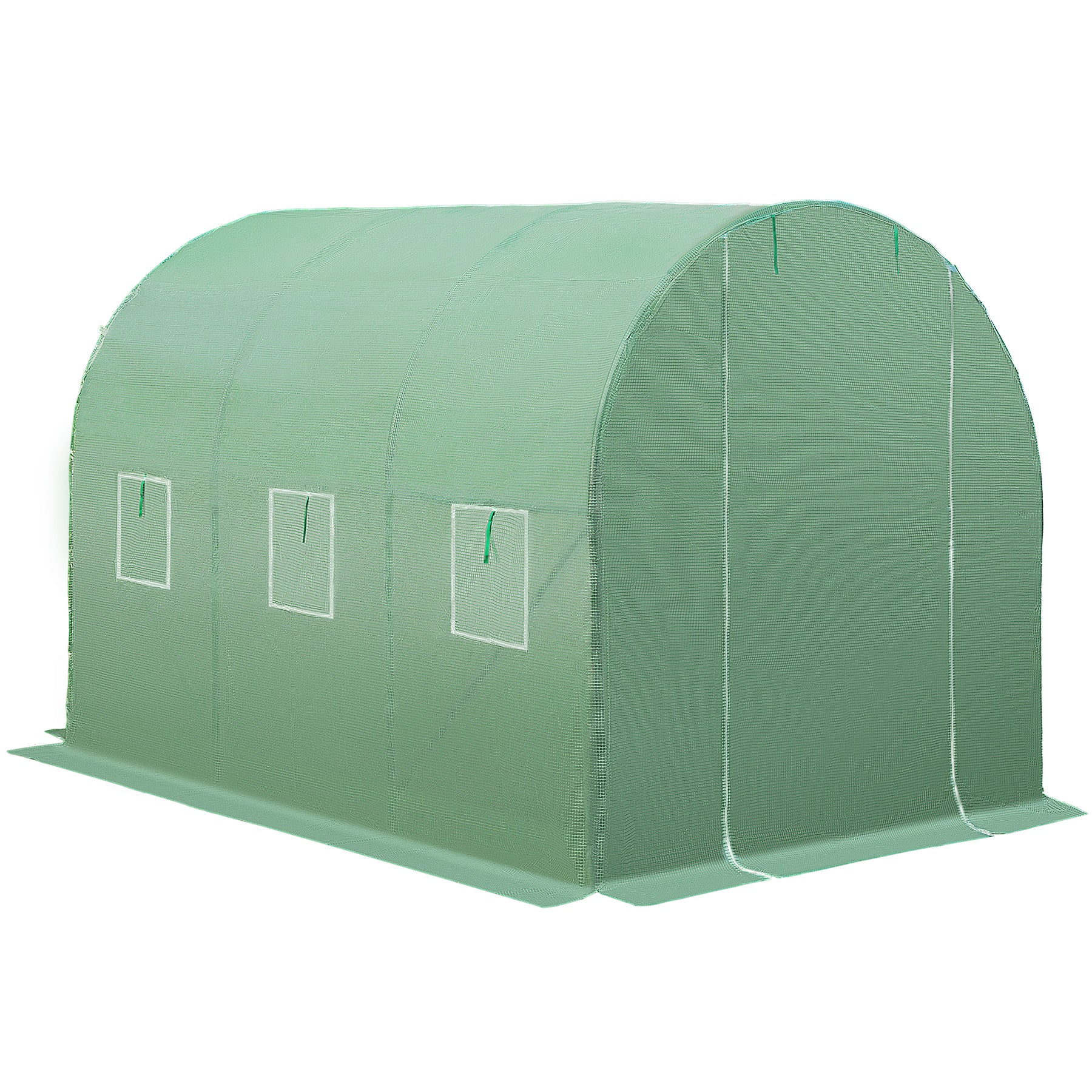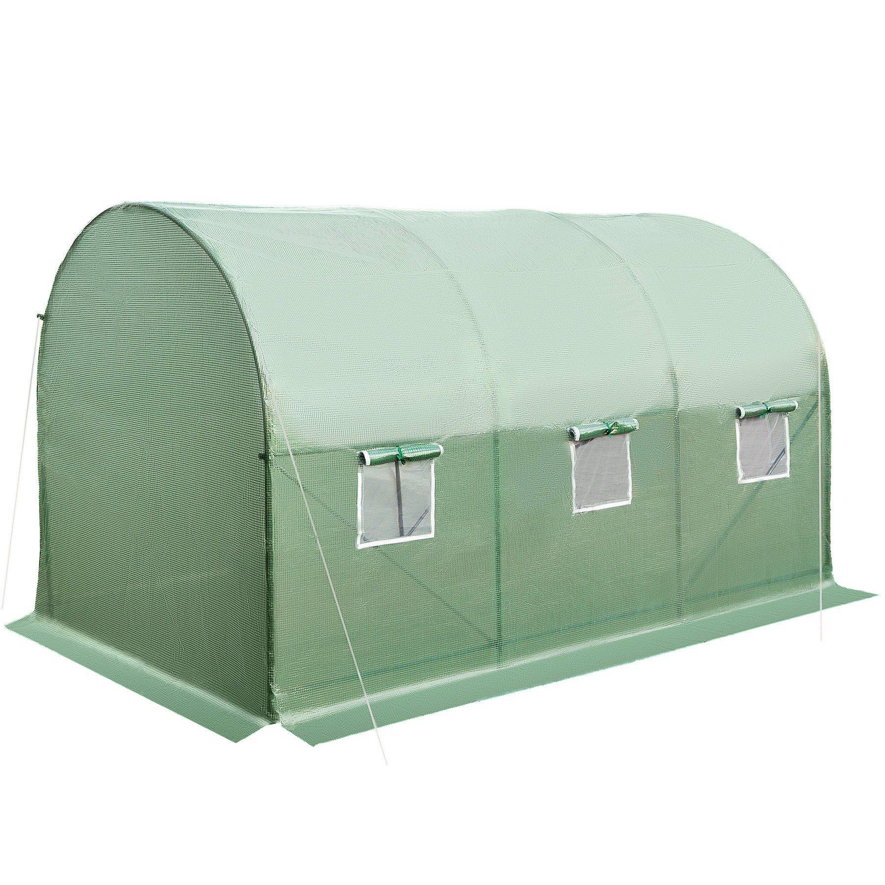 tectake® Foliekas in tunnelvorm met 6 ramen 343x200x200cm - Groen