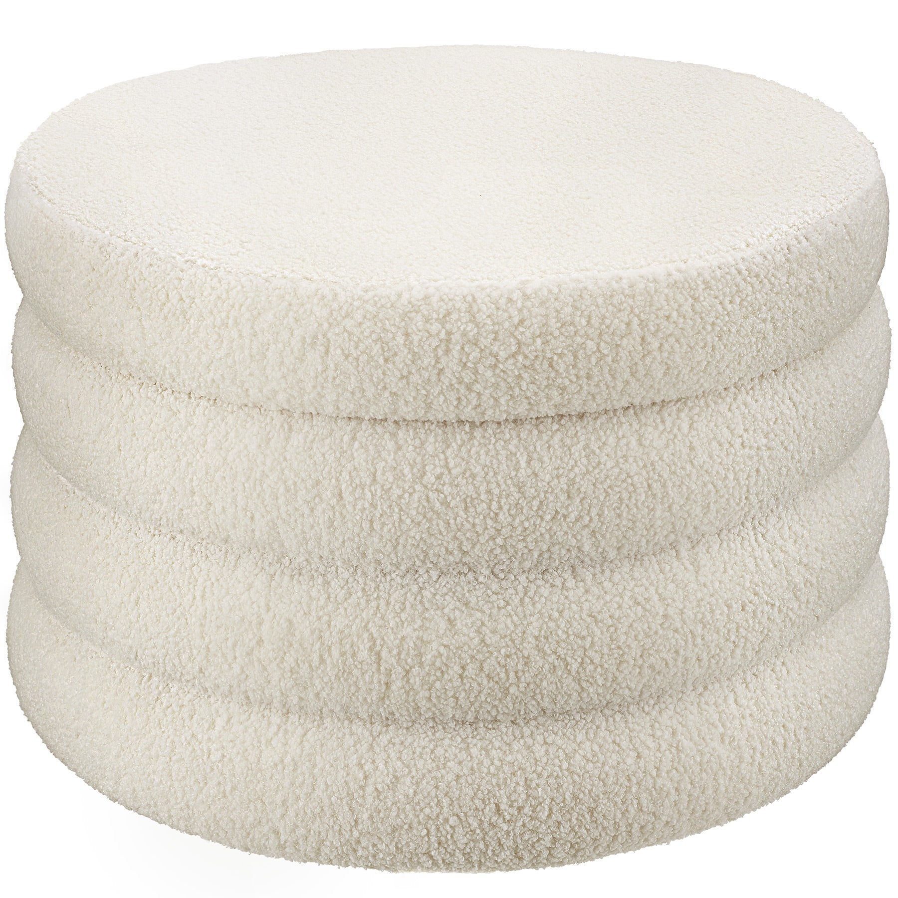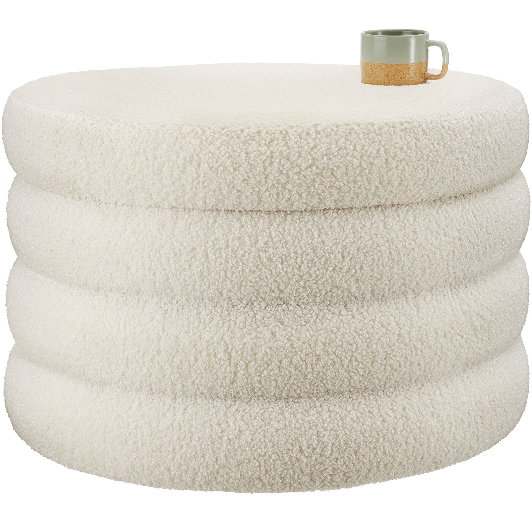 - Gezellige hoccker met bouclé-stof in knusse scandi-stijl