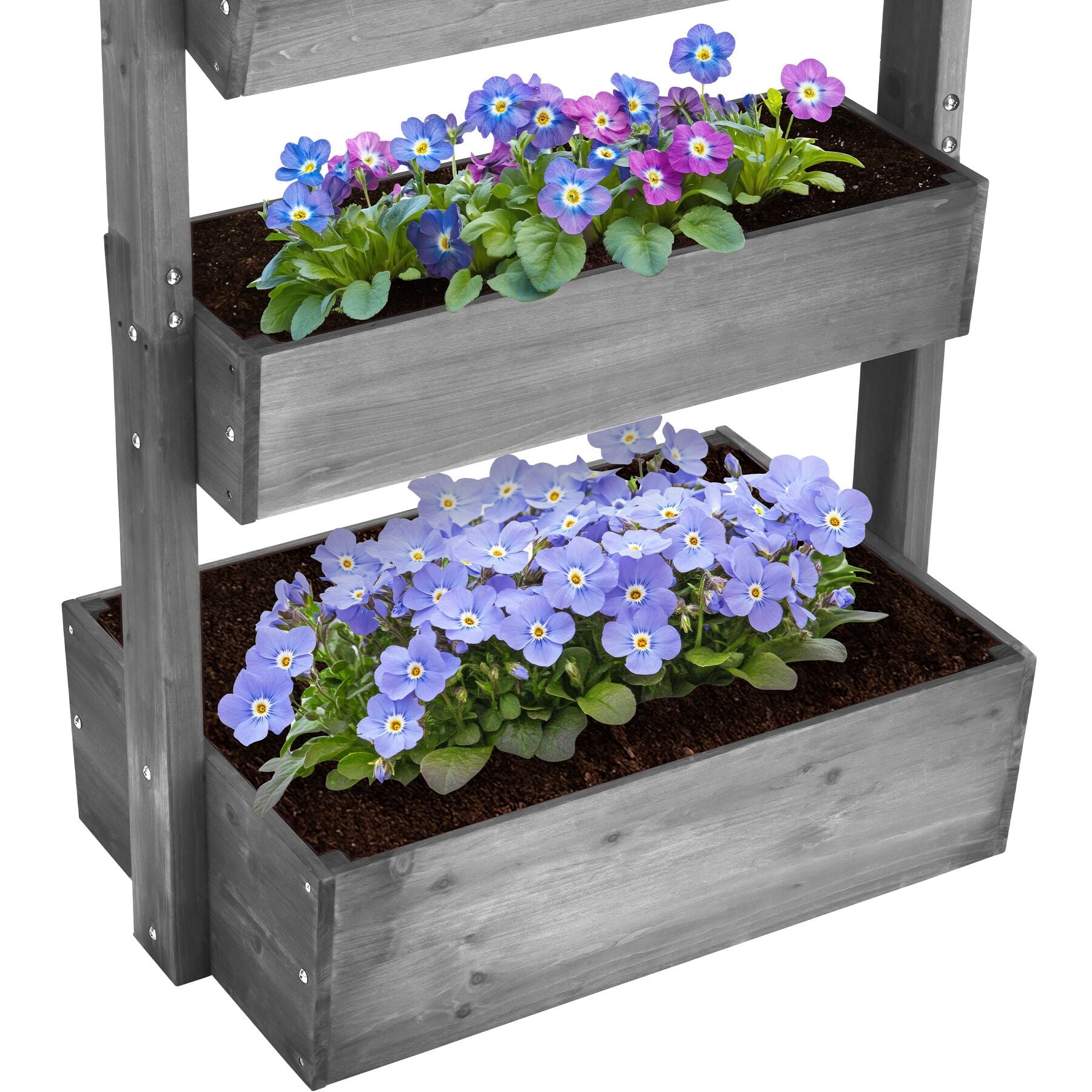 Ontdek de praktische plantenbak Flora van tectake en verander je buitenruimte in een groene oase van welzijn. Met vier etages biedt het voldoende ruimte om geurige bloemen, verse kruiden of knapperige groenten te kweken.