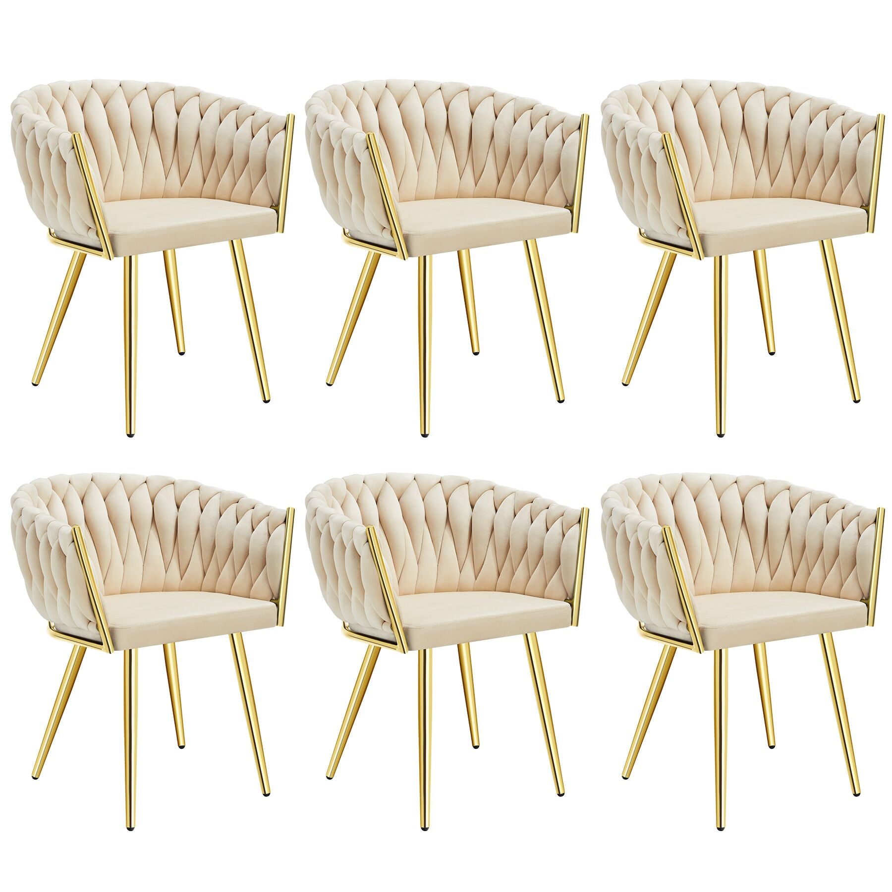 - Set van 6 comfortabele eetkamerstoelen met doorlopende arm- en rugleuning in elegante knooplook