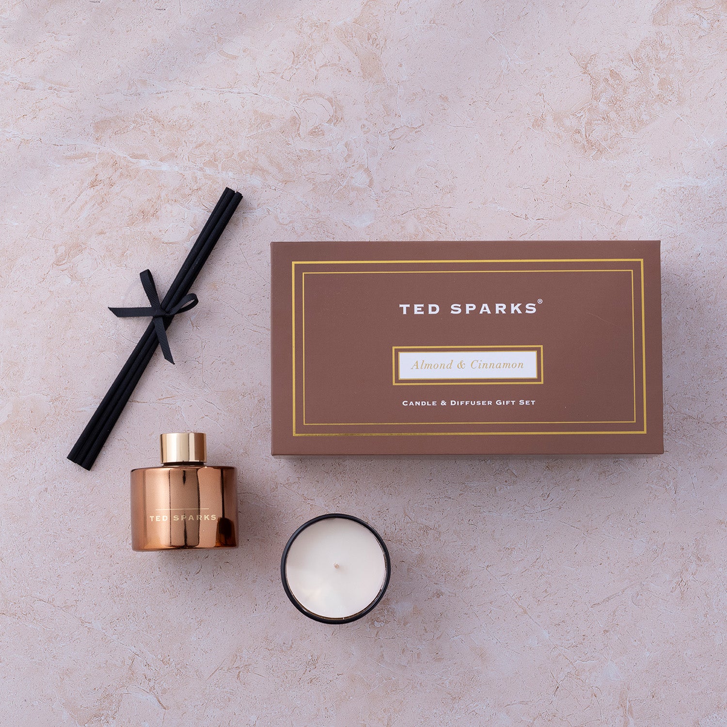 Ted Sparks - Geurkaars & Geurstokjes Diffuser - Gift set - Almond &
