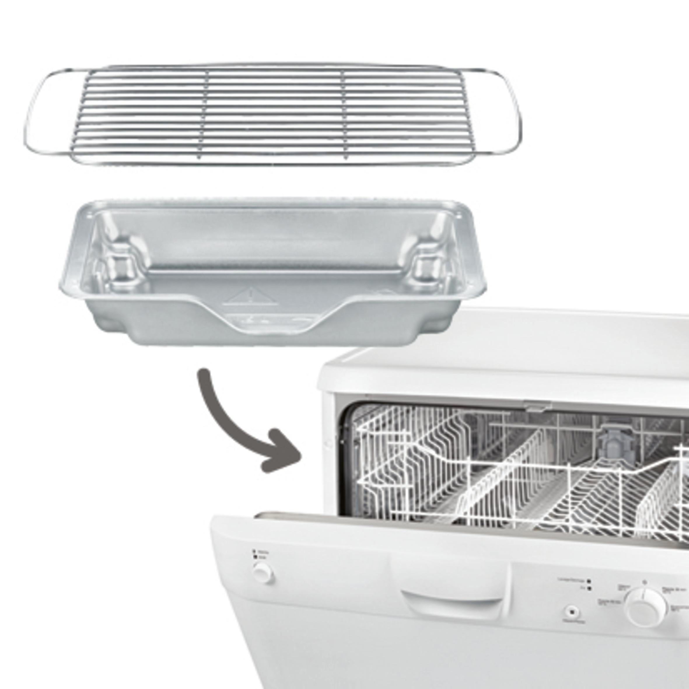 - Volledig demontabel, de vetopvangbak en het rooster zijn vaatwasserbestendig