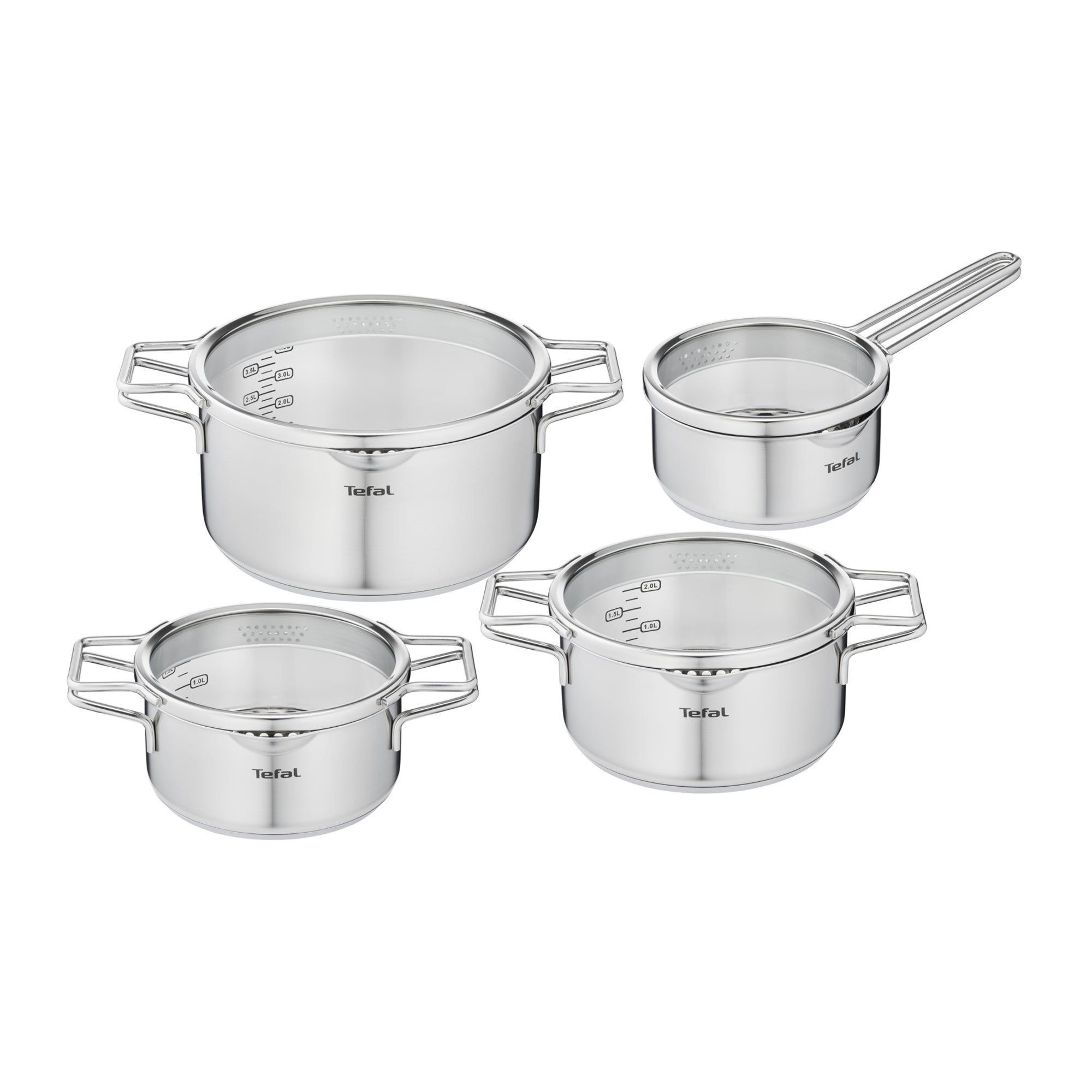 - Bevat 1 steelpan van Ø 16 cm + 3 kookpannen van Ø 18, 20 en 24 cm