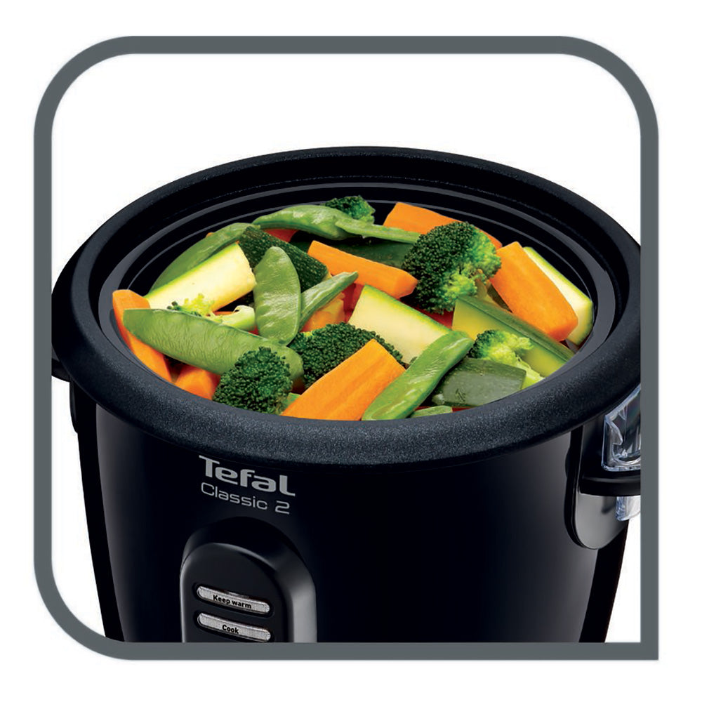Een apparaat, twee functies Koken en stomen kan met deze rijstkoker met een druk op de knop. De warmhoudfunctie wordt daarbij automatisch ingeschakeld als de rijst gekookt heeft. De stoompan zet je eenvoudig boven op de mechanische rijstkoker. In de RK1028 Classic passen ongeveer zes koppen rijst. De RK1038 Classic 2 is een maatje groter, hier passen 10 koppen rijst in.