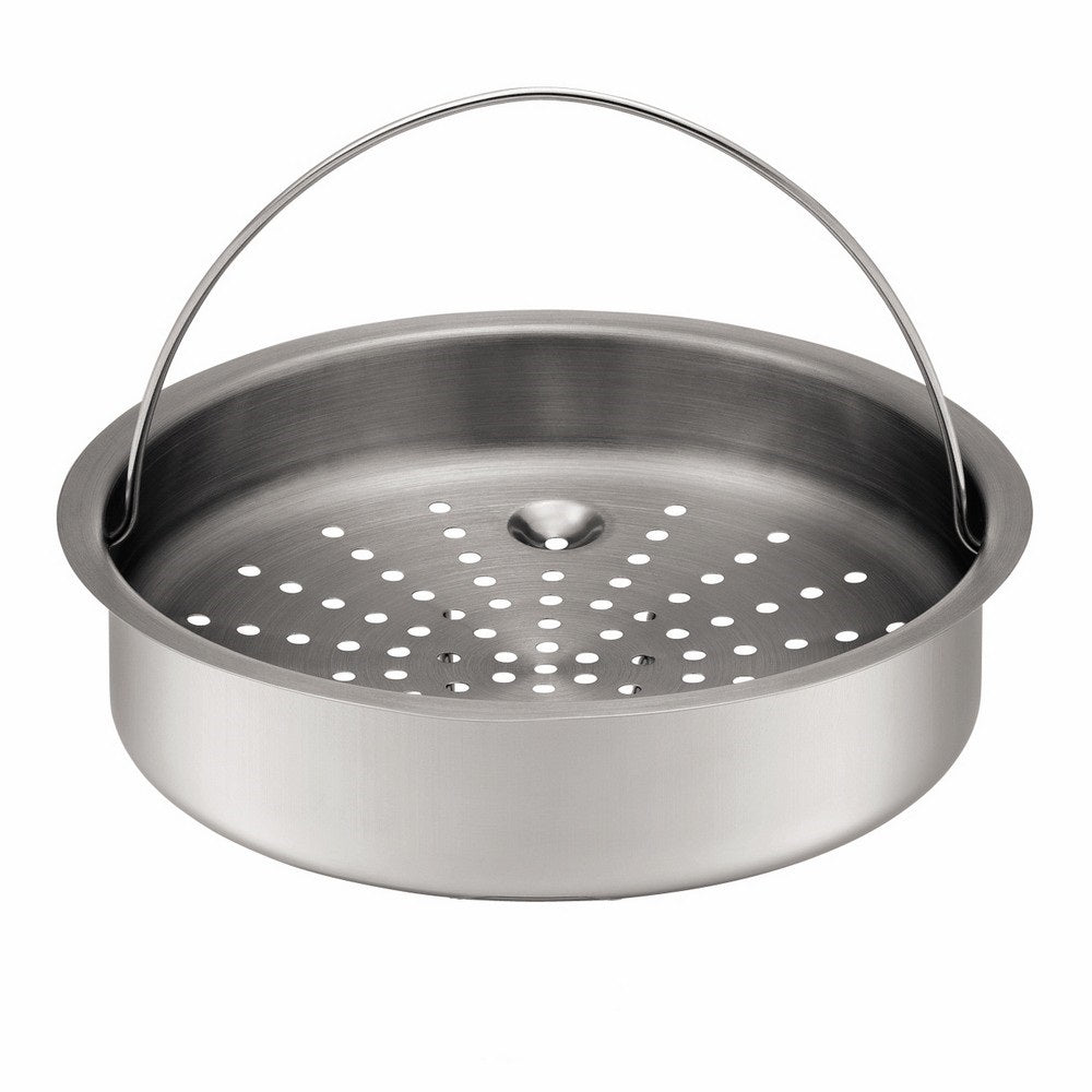 Lekker en gezond Door de verhoogde druk in de pan zijn ingrediënten sneller gaar. Hierdoor blijft de kleur van de producten mooier en de smaken sprekender en lekkerder. Omdat de vitamines beter behouden blijven, is het gerecht ook gezonder dan wanneer het bereid wordt in een reguliere kookpan! Alleen de 6 liter pan wordt geleverd met een praktisch stoommandje en een drievoetje waardoor groenten een aardappels tegelijkertijd gekookt kunnen worden.