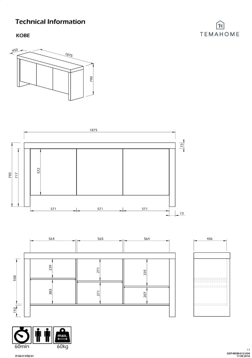 Het Kobe Dressoir van TemaHome ziet er niet alleen modern uit, maar is ook greeploos De deuren open door ze zachtjes in te drukken Hierdoor heeft het dressoir een ontzettend strak uiterlijk Het neemt de aandacht niet weg van je andere meubilair, maar draagt wel bij aan de totale sfeer in huis Je kunt deze gemakkelijk afnemen met een vochtige doek door het onderhoudsvriendelijke materiaal Het TemaHome Kobe Dressoir heeft een breedte van 188 cm en een diepte van 45 cm Je kunt dit dressoir ook in een andere variant vinden met twee deuren en drie lades