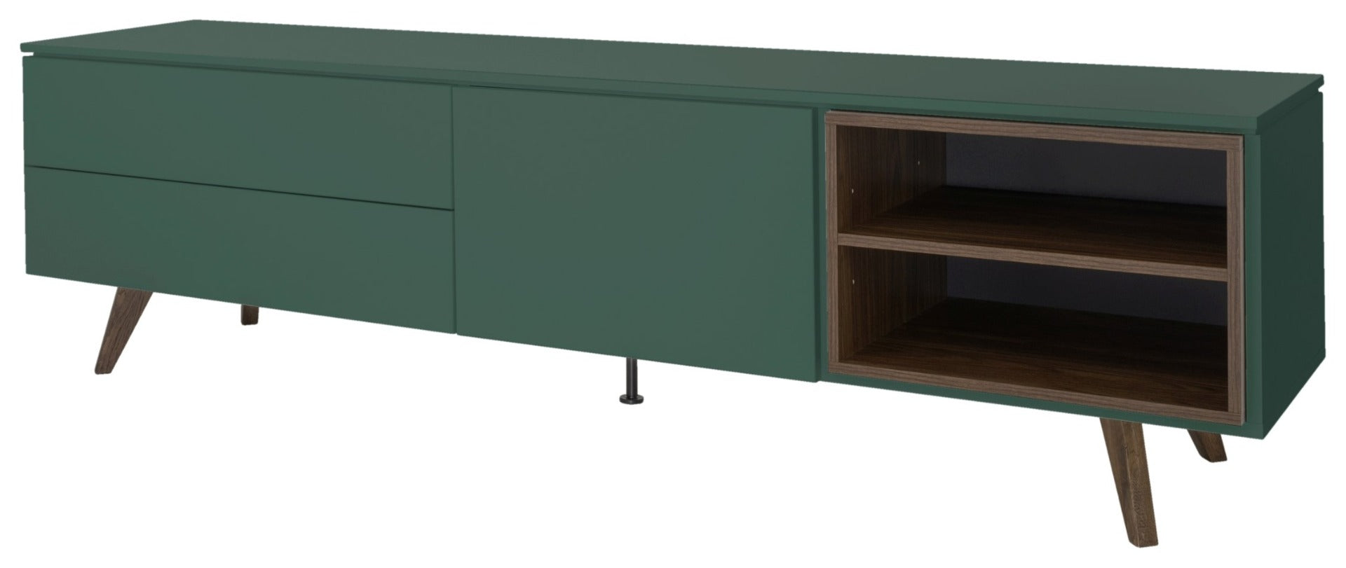 Plain van Tenzo is leverbaar in wit, bosgroen en zwart met metalen poten en in de stijlvolle combinaties wit/walnoot, bosgroen/walnoot en zwart/walnoot met houten poten