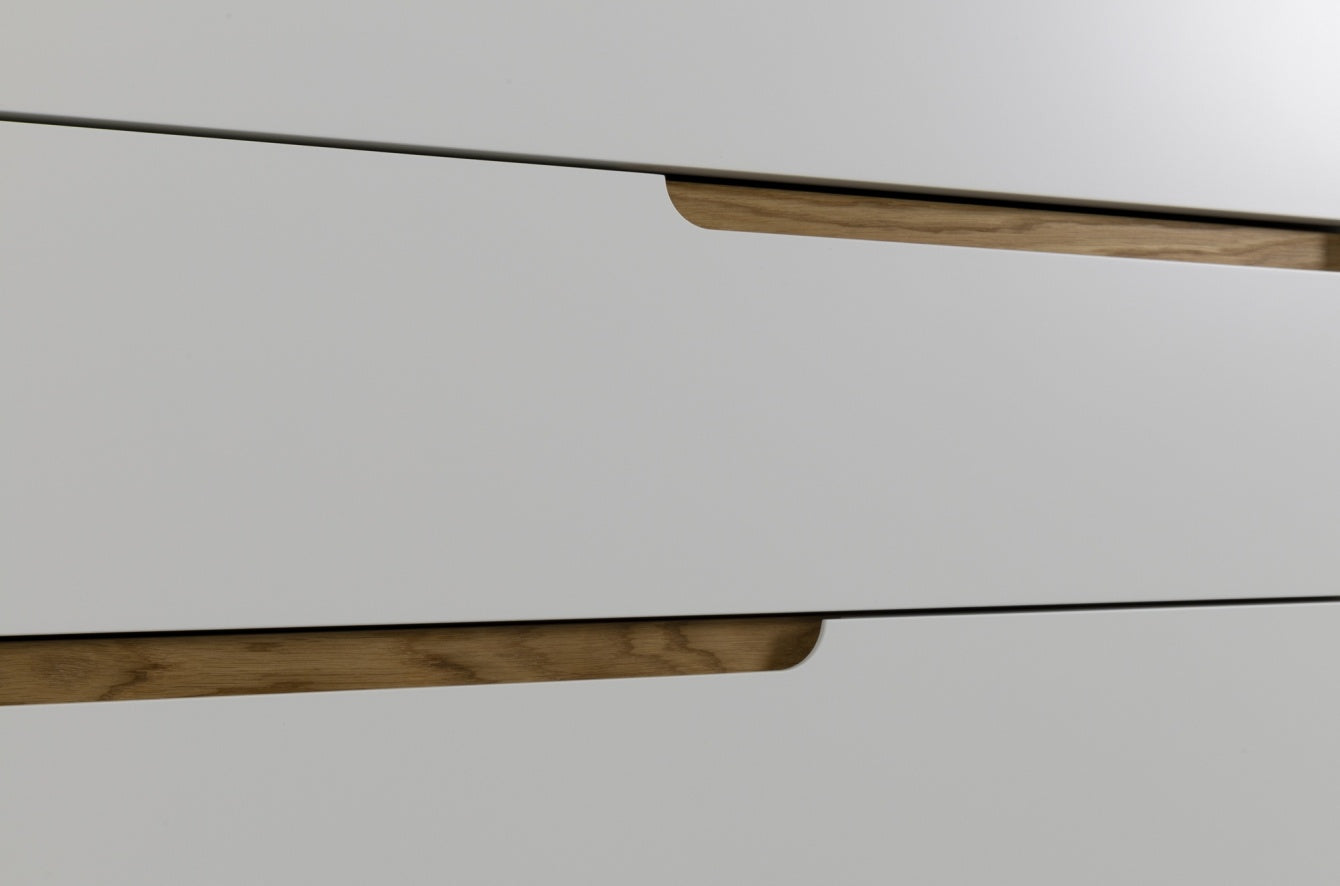 - Eiken handgrepen: elegante en asymmetrische handgrepen van gerookt en geolied eiken zijn subtiel Ze geven de Switch kast die extra designer uitstraling