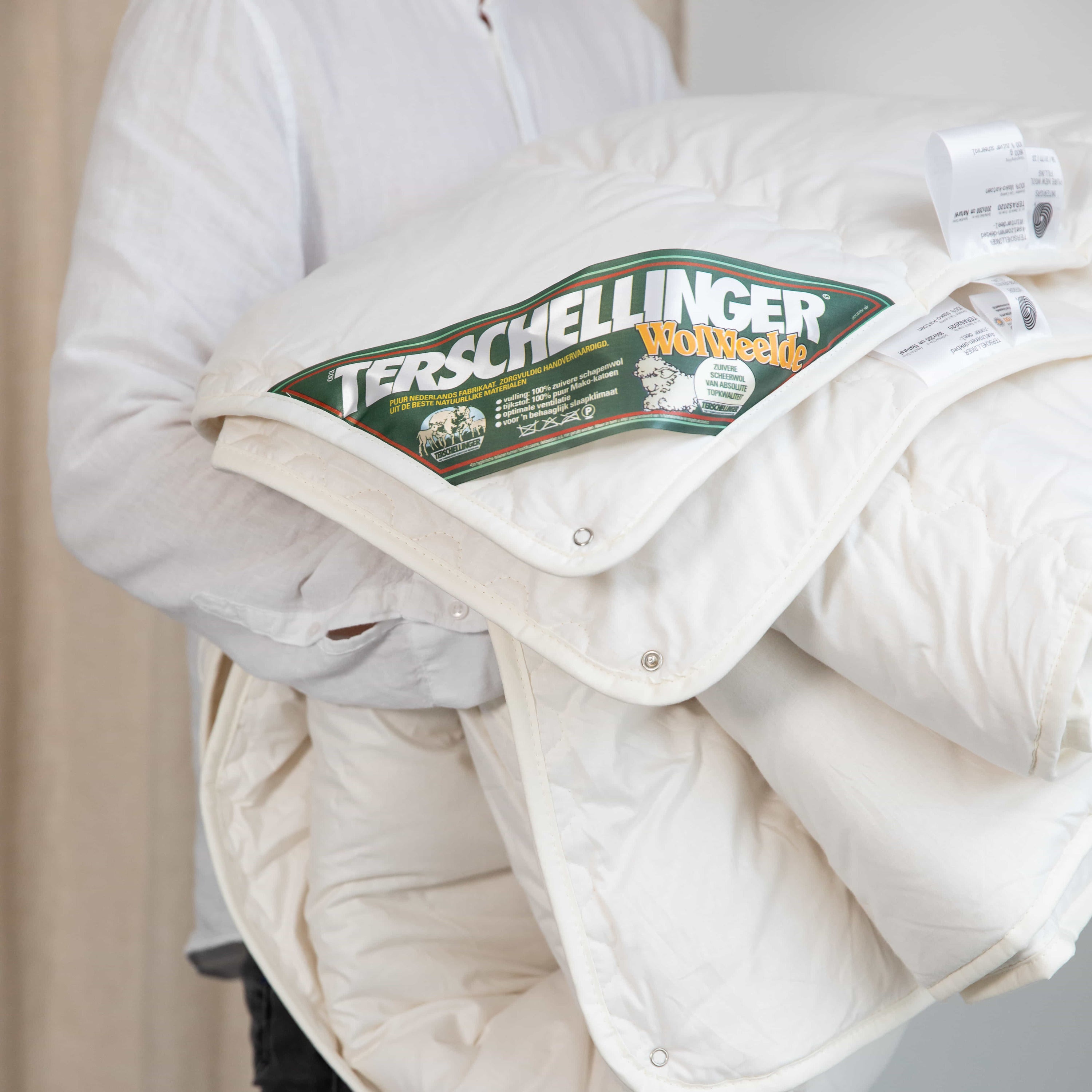 Terschellinger behoort tot de absolute top op het gebied van puur natuurlijk en gezond slapen. Met de ruime 75-jarige wollen slaapkamer ervaring, is Terschellinger inmiddels al generaties lang niet meer weg te denken in de Nederlandse en Belgische slaapkamers. De unieke wondere werkingen van zuiver Terschellinger wollen dekbedden, kussens, onderdekens en bedtextiel zijn al generaties lang in de Nederlandse slaapkamers vertrouwd. Bij Terschellinger is wol in haar puurste vorm. Terschellinger-Wolweelde producten worden op ambachtelijke wijze, met veel zorg en kennis vervaardigd. De puur Hollandse Terschellinger familie heeft nog altijd dezelfde hoge eisen op het gebied van kwaliteit, hygiëne en service! Dat voelt u niet alleen, dat ziet u ook; de klasse straalt ervan af. “Lekker slapen doe je onder Terschellinger wol!