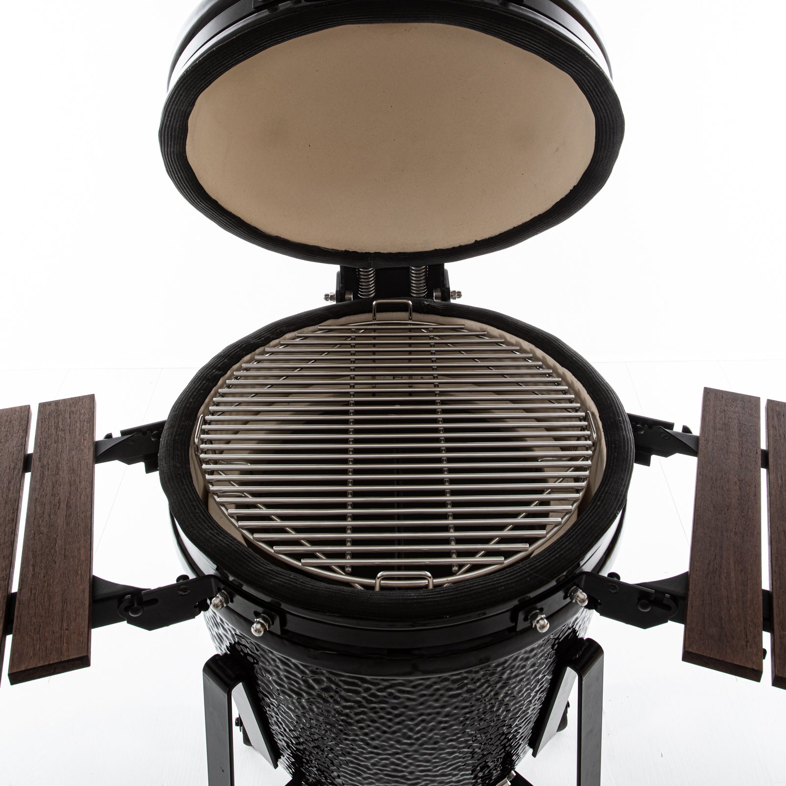 Een aanwinst voor je tuin Deze barbecue is niet alleen heel veelzijdig, maar ziet er ook nog eens heel stijlvol én stijlvol uit door zijn glanzende, zwarte uitvoering! Met een kookoppervlak van Ø 42 cm heb jij genoeg ruimte om al je vrienden te voorzien van een heerlijke maaltijd. The Bastard Medium heeft een gietijzeren precisie-topschijf en een extra dik RVS-grillrooster van 6 mm. Hij staat nu nog stabieler met een van gegalvaniseerd staal onderstel. Om hem helemaal compleet te maken is The Bastard Medium voorzien van een plate setter, RVS-kolenmand, en een RVS-as-opvanger.