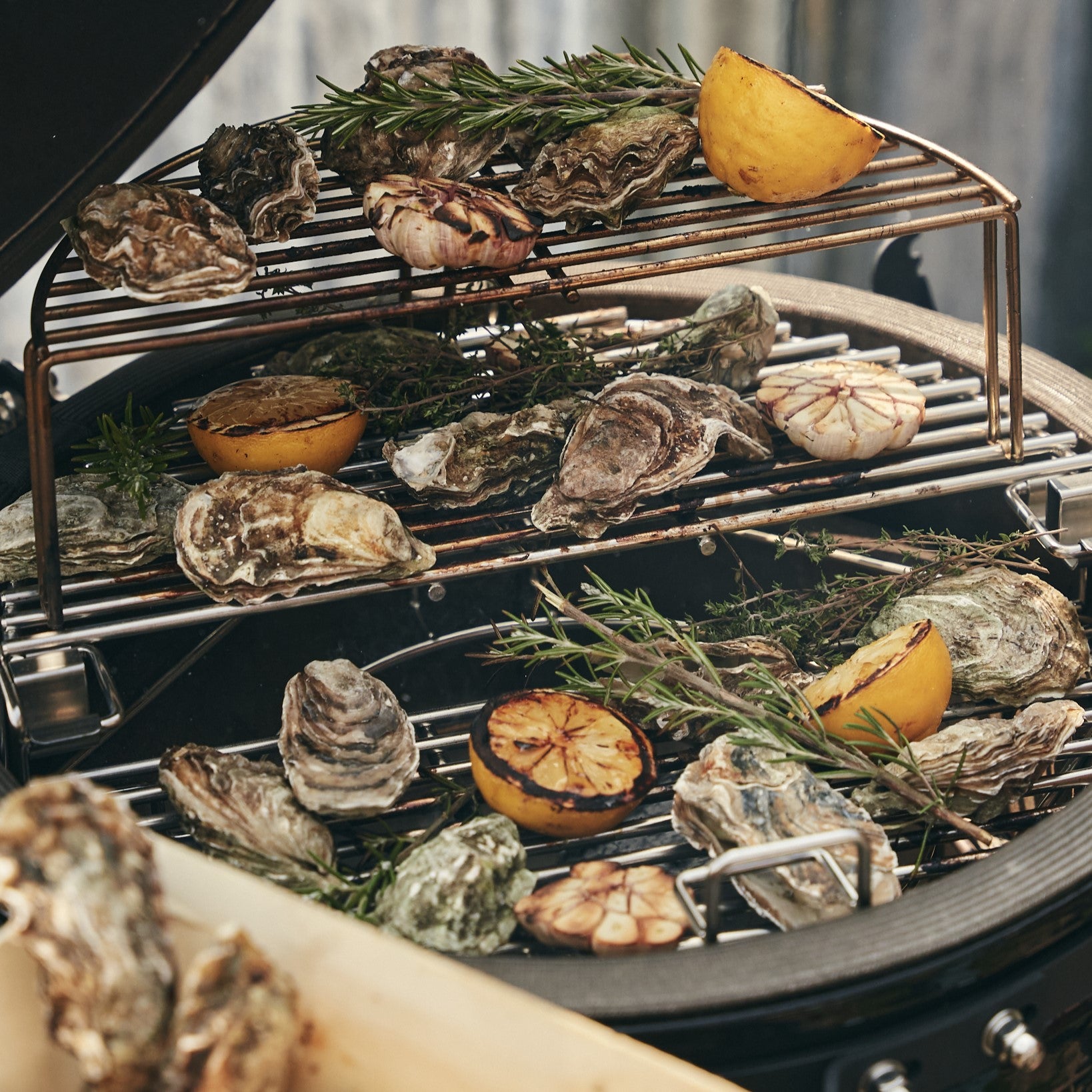 Multi Level Cooking System Een nieuwe toevoeging in 2022 aan The Bastard Large en Medium is het multi level cooking system. Met dit modulaire systeem transformeer je The Bastard in een alleskunner. Door het hitte schild of het rooster in tweeën te splitsen kun je op verschillende niveaus tegelijkertijd gerechten bereiden. Zo maak je gemakkelijk een complete maaltijd in één sessie. Toch liever wokken? Draai het rooster om en je hebt een pannenhouder voor je wok- of paella pan.