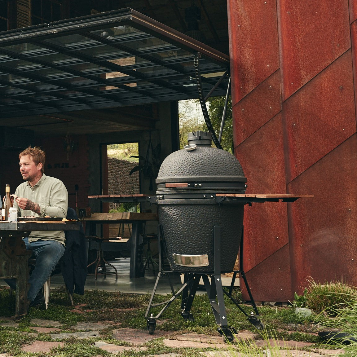 - Robuuste barbecue met mat zwarte keramieken kuip en deksel