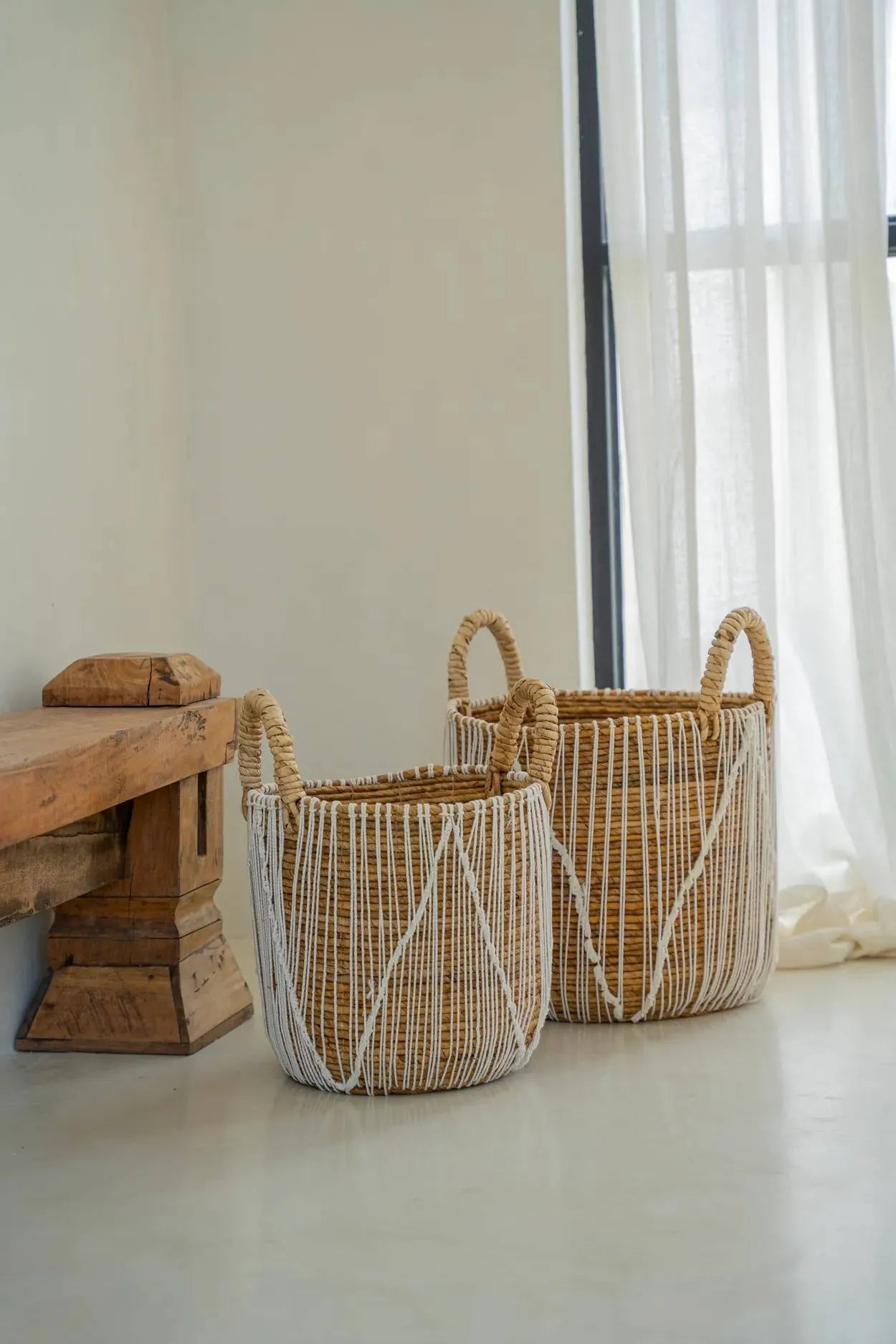 Kijk eens naar deze mand! Het is moeilijk om dat niet te doen, want het is een kunstwerk. De mand zelf is gemaakt van sterk, duurzaam zeegras dat een prachtige natuurlijke uitstraling heeft en jaren meegaat. Hij is versierd met een indrukwekkend patroon in wit katoen. Ideaal voor tijdschriften, speelgoed of zelfs een mooie potplant. En het mooiste: er zijn drie maten beschikbaar!