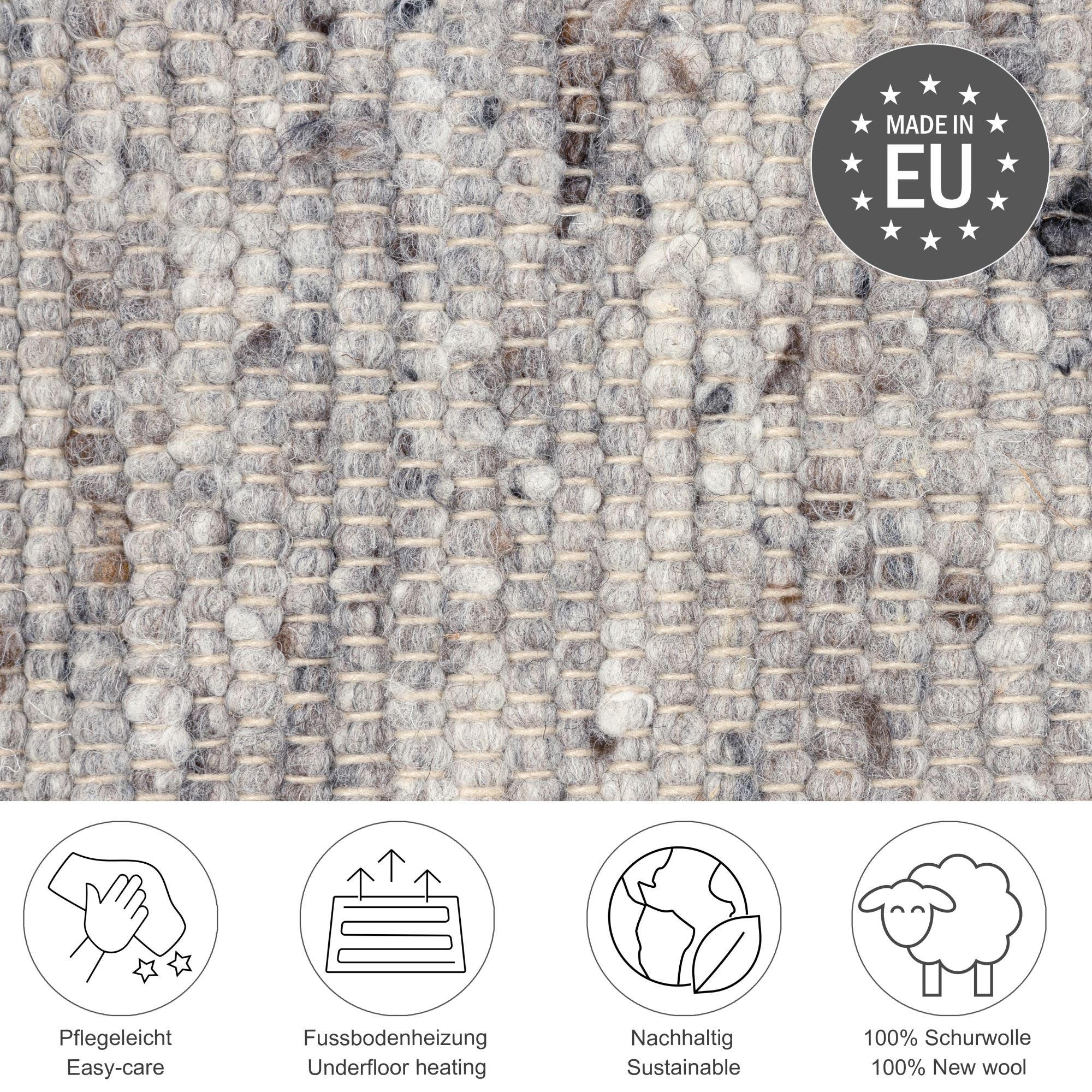- Qualité de marque THEKO : 100 % pure laine vierge - Hauteur totale : 12 mm - env. 2100 g/m
