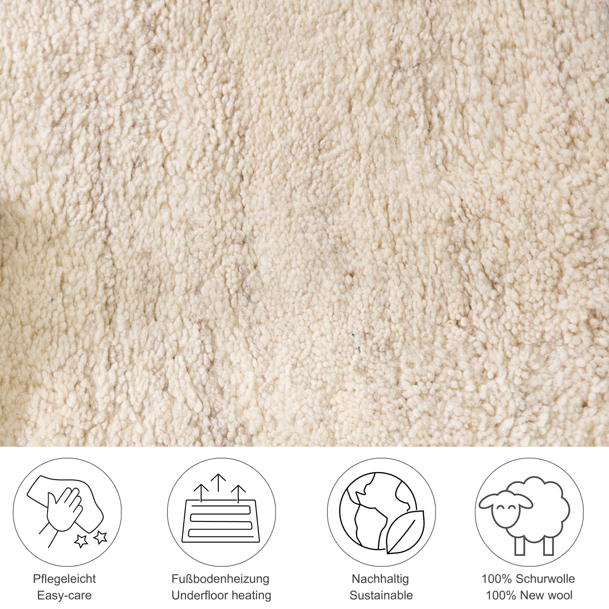 Het Marokkaanse Berber tapijt MALORONGA gaat hand in hand met de geschiedenis van de Europese tapijtmarkt. Dankzij de zuivere scheerwol, de totale hoogte van 24 mm en het totale gewicht van 5,4 kg per m² voelt u zich prettig op dit duurzame tapijt van hoge kwaliteit. De dichte, korrelige structuur en de traditionele bewerking ervan weten al decennialang kwaliteitsbewuste consumenten te bekoren. De huidige trend naar duurzaamheid maakt dit product tot een veilige investering. De ultrafijne wol, geïmporteerd uit Nieuw-Zeeland, Engeland en Frankrijk, zorgt voor een zeer dikke en zachte, maar altijd elegante structuur. Dit 20/20 tapijt van dubbele kwaliteit is duurzaam en de scheerwol uit het Marokkaanse Atlasgebergte zorgt voor een dik, zacht en warm tapijt.