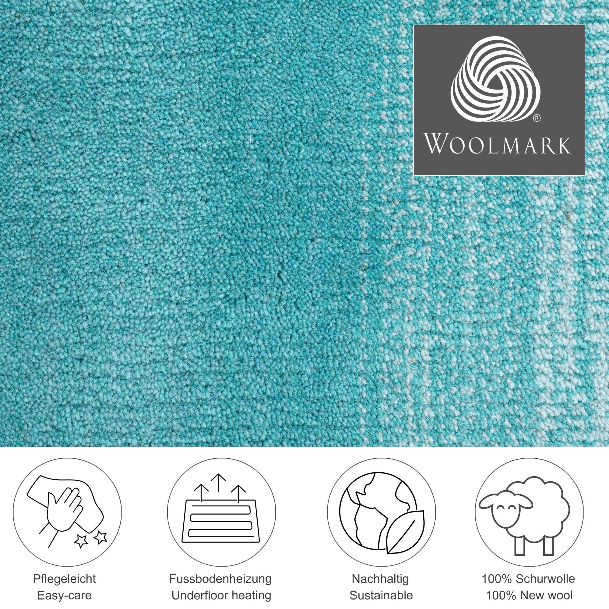 Theko Tapijt met kleurverloop Wool Comfort 90x160 cm - Turquoise