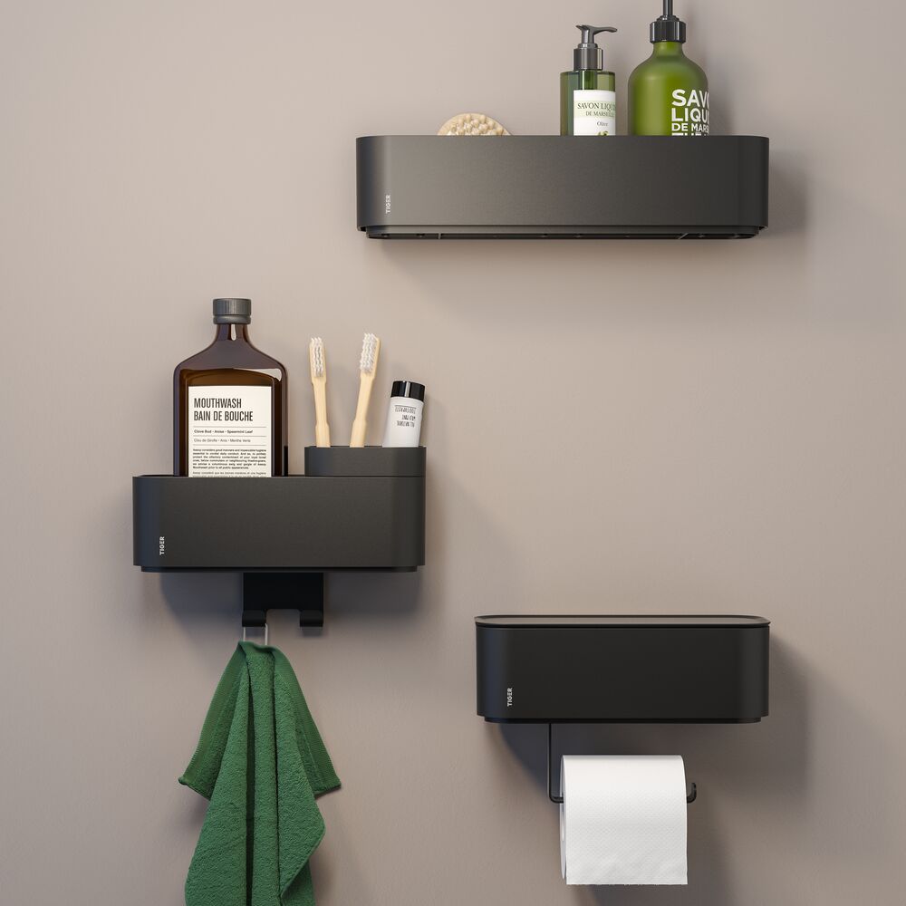 Haak voor je handdoek? Juist. Je tanden poetsen onder douche? Geen probleem. Dit opbergbakje uit de 2-Store serie is jouw antwoord op al je opbergproblemen. Afgestemd op jouw behoefte in de badkamer: multifunctioneel en een natuurtalent in opbergen. Praktisch en stijlvol in zwart.