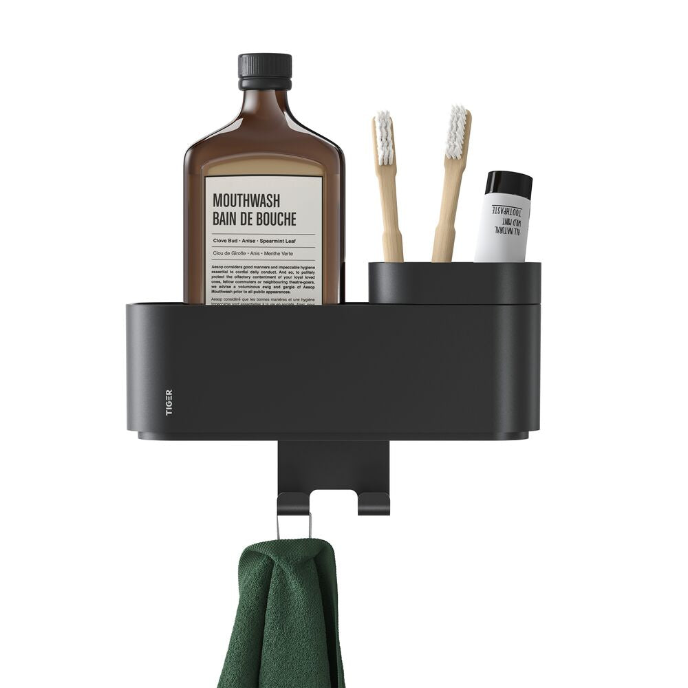 Haak voor je handdoek? Juist. Je tandenpoetsen onder douche? Geen probleem. Dit opbergbakje uit de 2-Store serie van Tiger brengt orde. Afgestemd op jouw behoefte in de badkamer: multifunctioneel en een natuurtalent in opbergen.