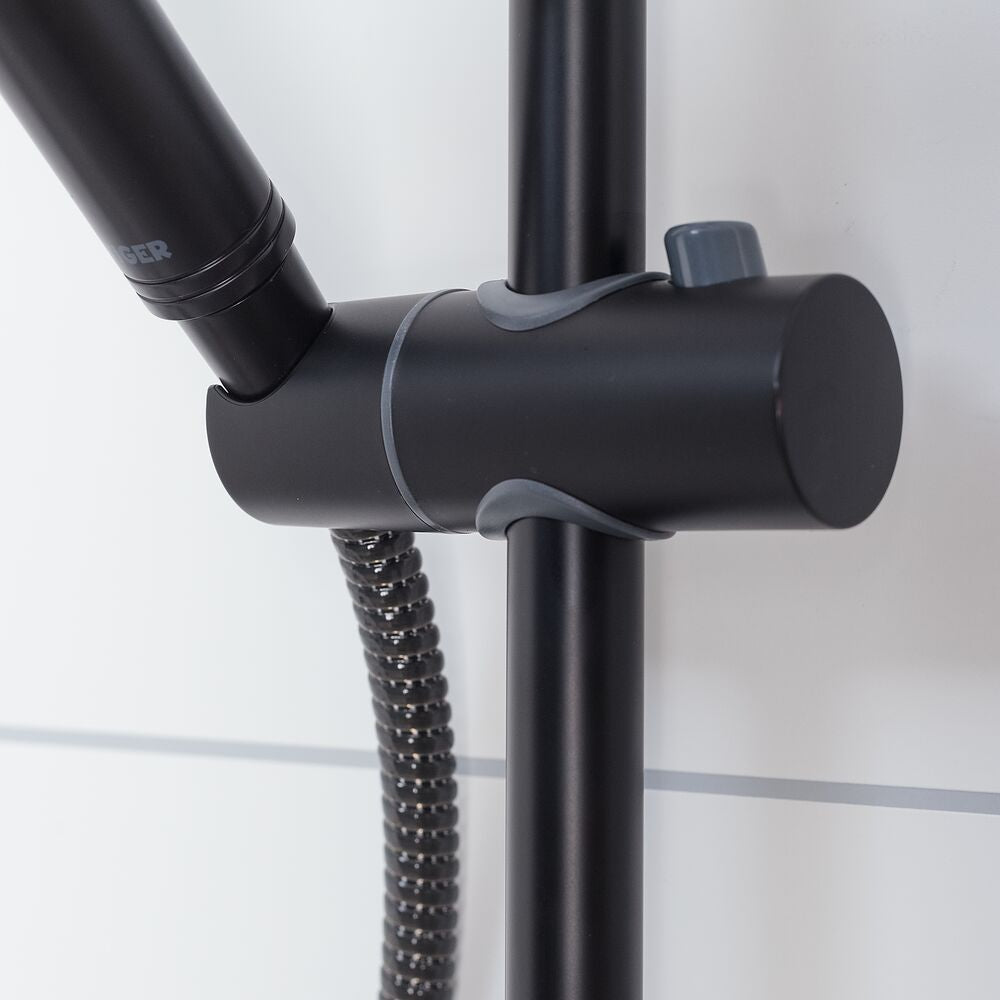 Elke dag douchen we gemiddeld 9 minuten, reden genoeg om de badkamer te voorzien van een regendoucheset die én lekker doucht én die gezien mag worden.Deze luxe ronde regendouche van Tiger is uitgevoerd in mat zwart en geeft de badkamer een echt spa-gevoel. Met een comfortabele douchekop van maar liefst 22,5 cm doorsnede sta jij onder de douche zonder een waterstraal te missen. De handdouche heeft 3 verschillende waterstralen waardoor je kunt kiezen voor een heerlijke massage of je haren perfect kunt uitspoelen. Met oog voor detail en design is de omstelknop aan de achterzijde geïntegreerd. Beiden zijn in hoogte verstelbaar, ideaal voor gezinnen. Switch gemakkelijk met de knop aan de stang van hoofddouche naar handdouche. De doucheslang is voorzien van anti-twist en voorkomt draaien. Door de speciale technologie voor het aanbrengen van de zwart kleur zorgt Tiger ervoor dat de zwarte kleur tien keer meer krasbestendig is en beschermd is tegen roesten. Makkelijk schoon te maken met de antikalk nozzles. Het advies is om deze set na gebruik even af te drogen met een droge doek. Zo geniet jij nog jaren van de kleur!Voor de ultieme regendouche is het wel handig om voor aankoop even te controleren of de boiler genoeg waterdruk heeft om een grote hoeveelheid water aan te kunnen.