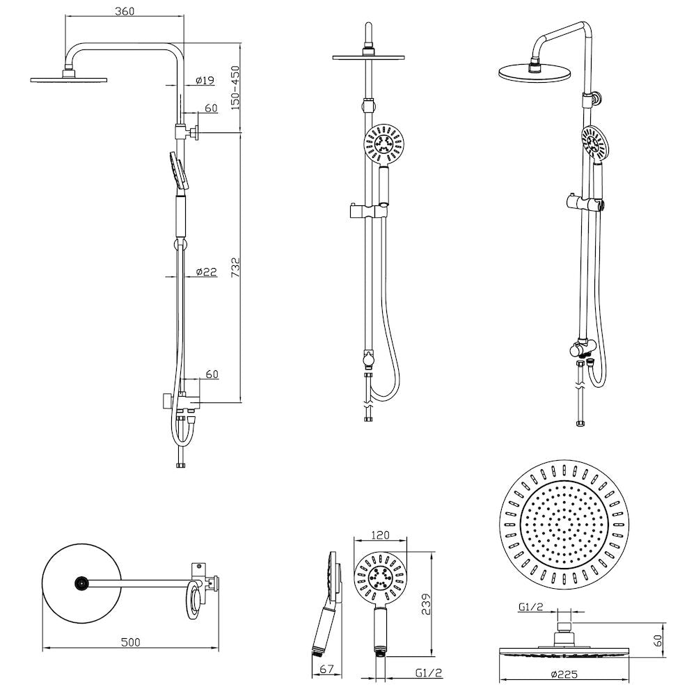 - Regendouchekop met regenbui straal. Handdouche met 3 waterstralen: vol, bruisend en massage