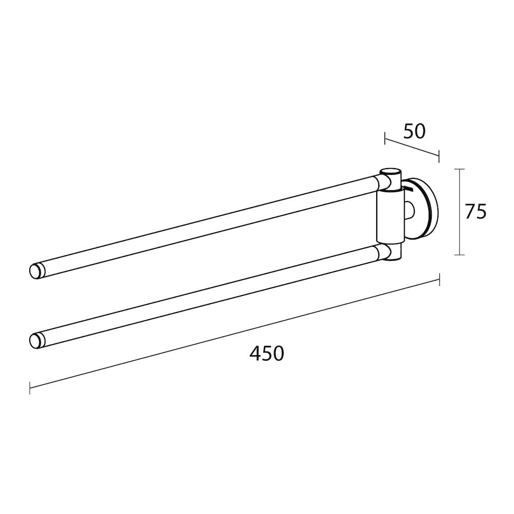 - 2-armige handdoekhouder: 45 x 5 x 7,5 cm