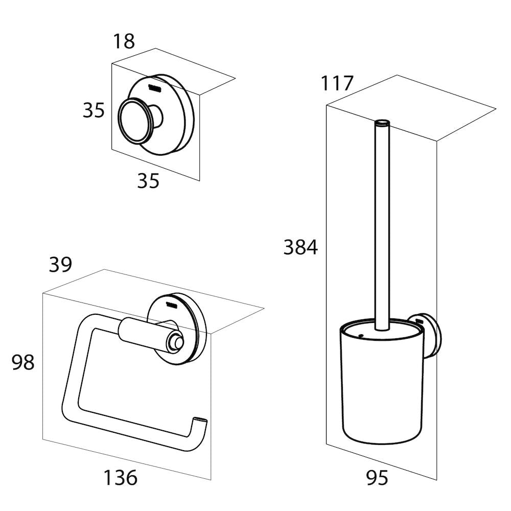 - Toiletaccessoiresset met een toiletborstel. toiletrolhouder en handdoekhaak