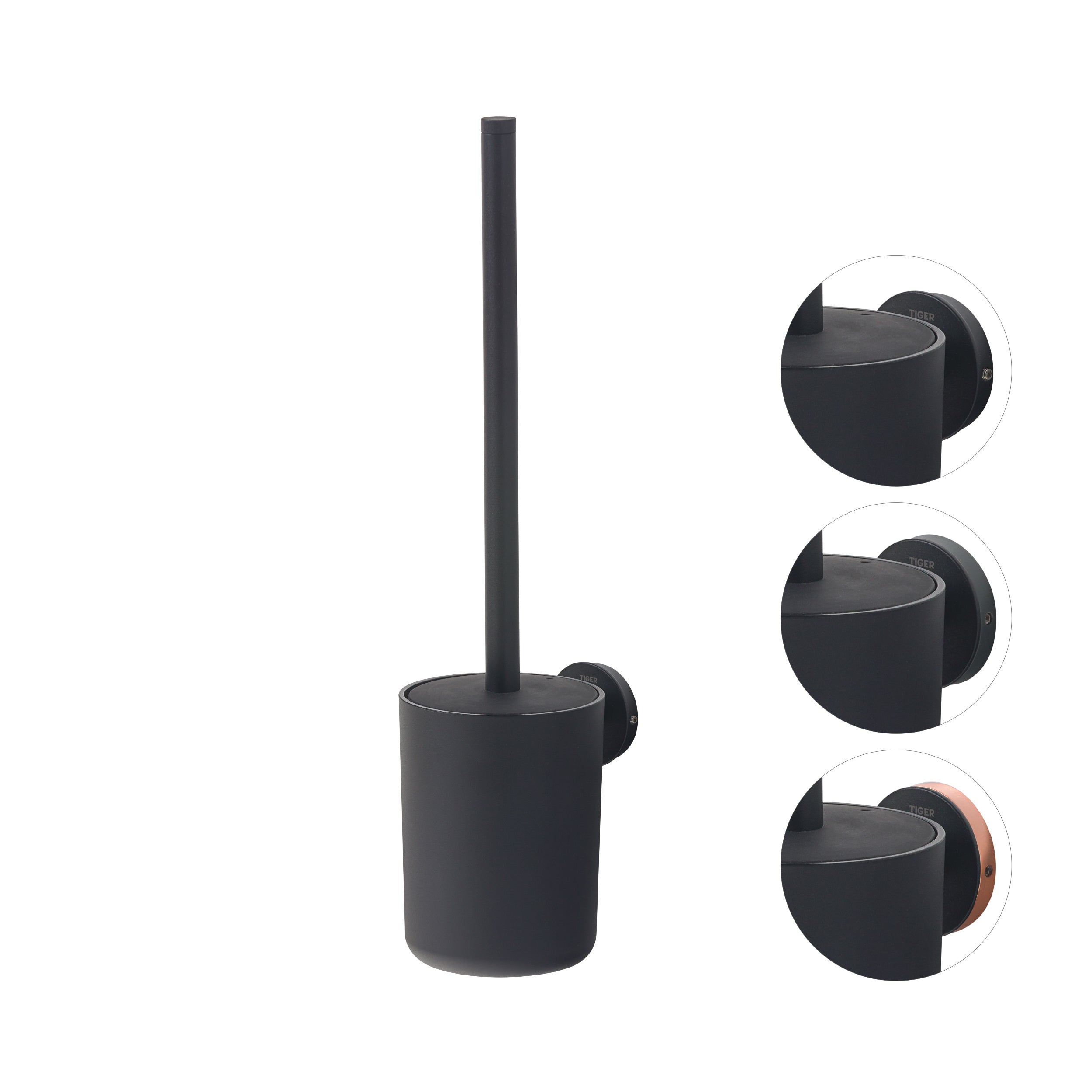 De toiletborstel met houder uit de Urban serie van Tiger is uitgevoerd in de kleur mat zwart en wordt geleverd met twee decor ringen. De decor ringen, in de kleur koper en grijs, maken het mogelijk een subtiel kleuraccent toe te voegen. Het is ook mogelijk de toiletborstelhouder zonder de decor ring te monteren waardoor het zeer eenvoudig is om het product aan de gewenste stijl aan te passen. Bij de montage van het artikel wordt gebruik gemaakt van een muurplaatje waardoor de bijgeleverde bevestigingsmaterialen uit het zicht verdwijnen. Deze serie bevat tevens een groot aantal aanvullende accessores voor de badkamer en het toilet. Alle in dezelfde stijl.De toiletborstelhouder is tevens geschikt voor montage met TigerFix type 1, waarmee accessoires snel en eenvoudig op een gladde, harde ondergrond te bevestigen zijn door middel van een gepatenteerd lijmsysteem. Boren is niet noodzakelijk en de accessoires zijn eenvoudig te verwijderen zonder dat er resten op de ondergrond achterblijven. TigerFix is apart verkrijgbaar.