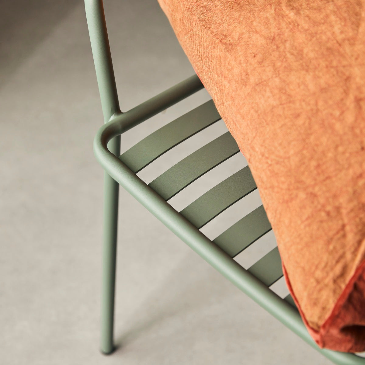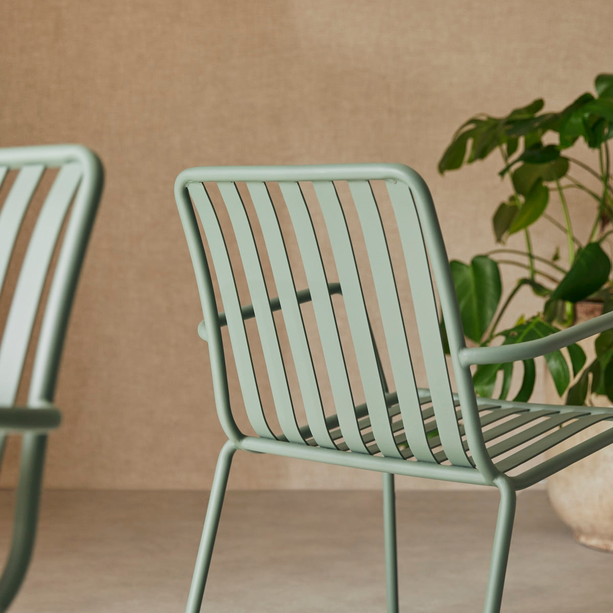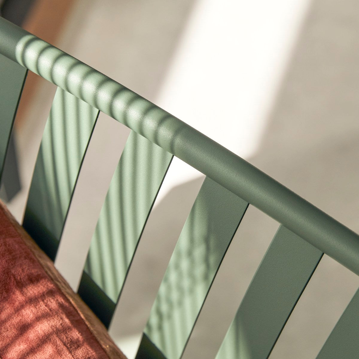 Met zijn groene kleur brengt de metalen Gaby fauteuil zowel in huis als buiten een fris accent. Hij is mobiel en stapelbaar en past dan ook in elke woonruimte, van de woonkamer tot het terras.
