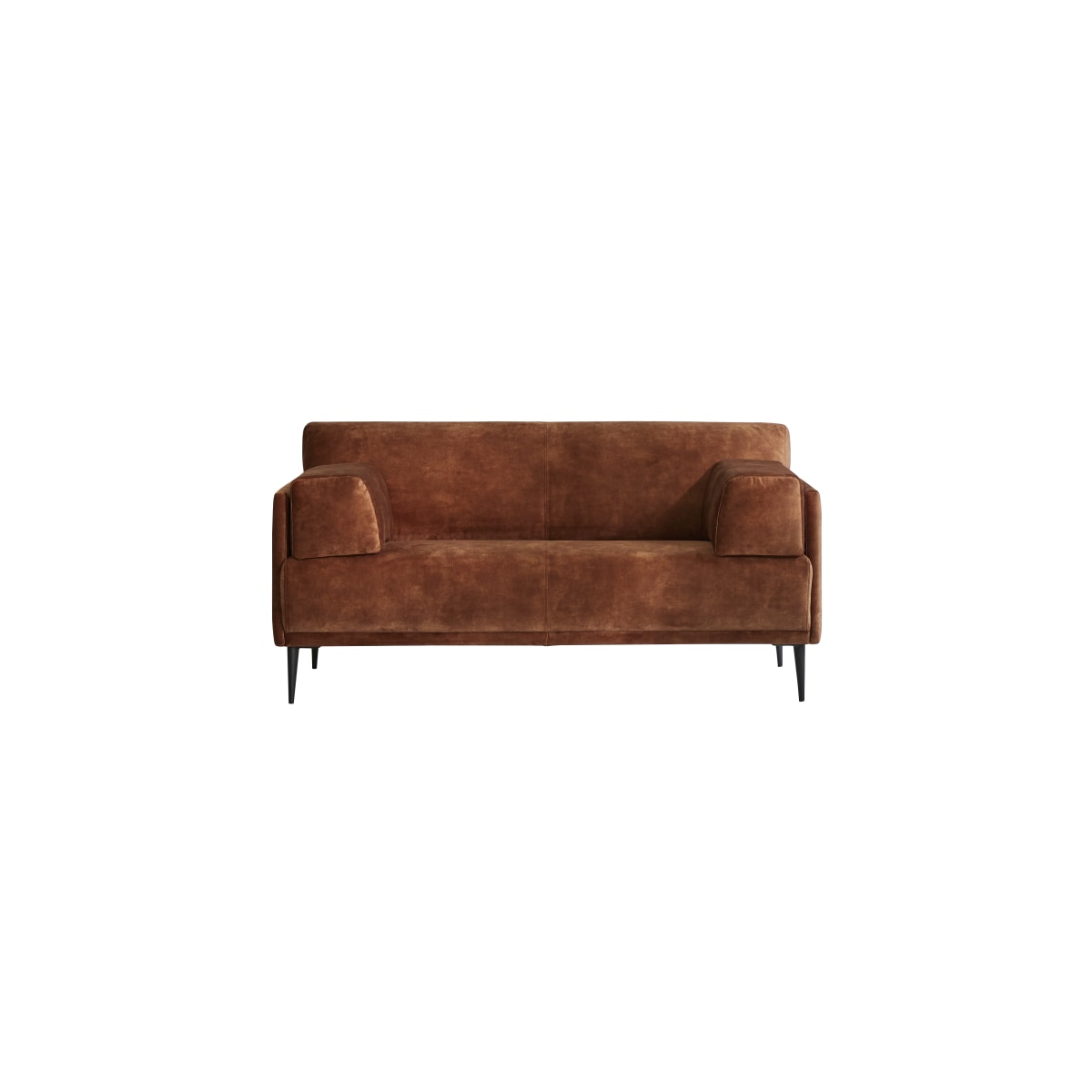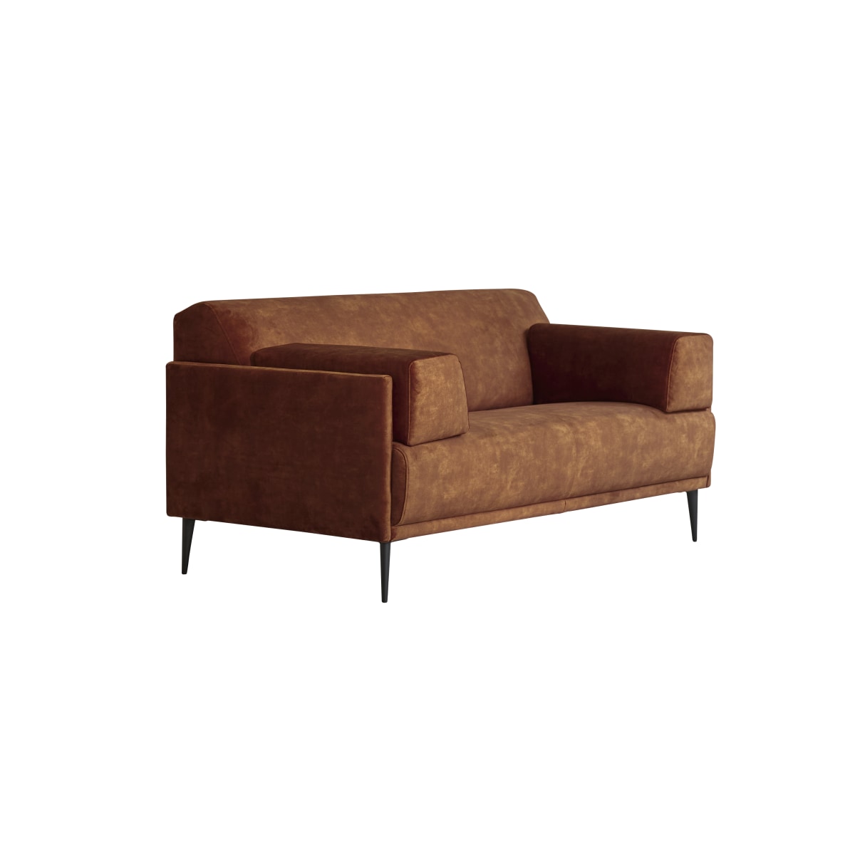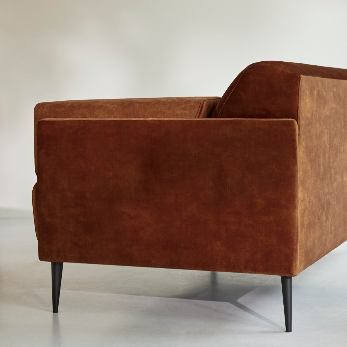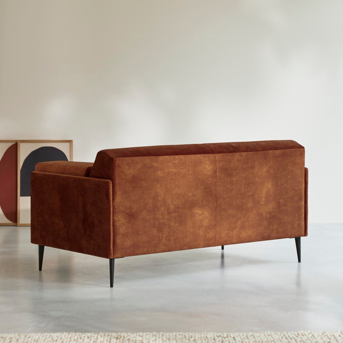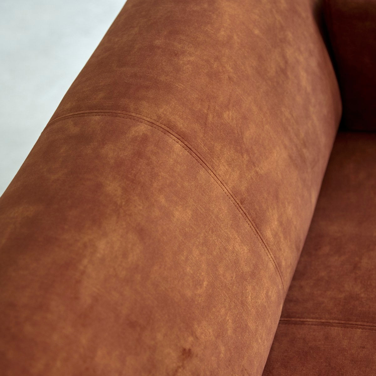 Hij is samengesteld uit een frame van grenen met daarop een zitting van terracottabruin fluweel voor een verfijnde en elegante uitstraling. De bank heeft ook metalen poten.