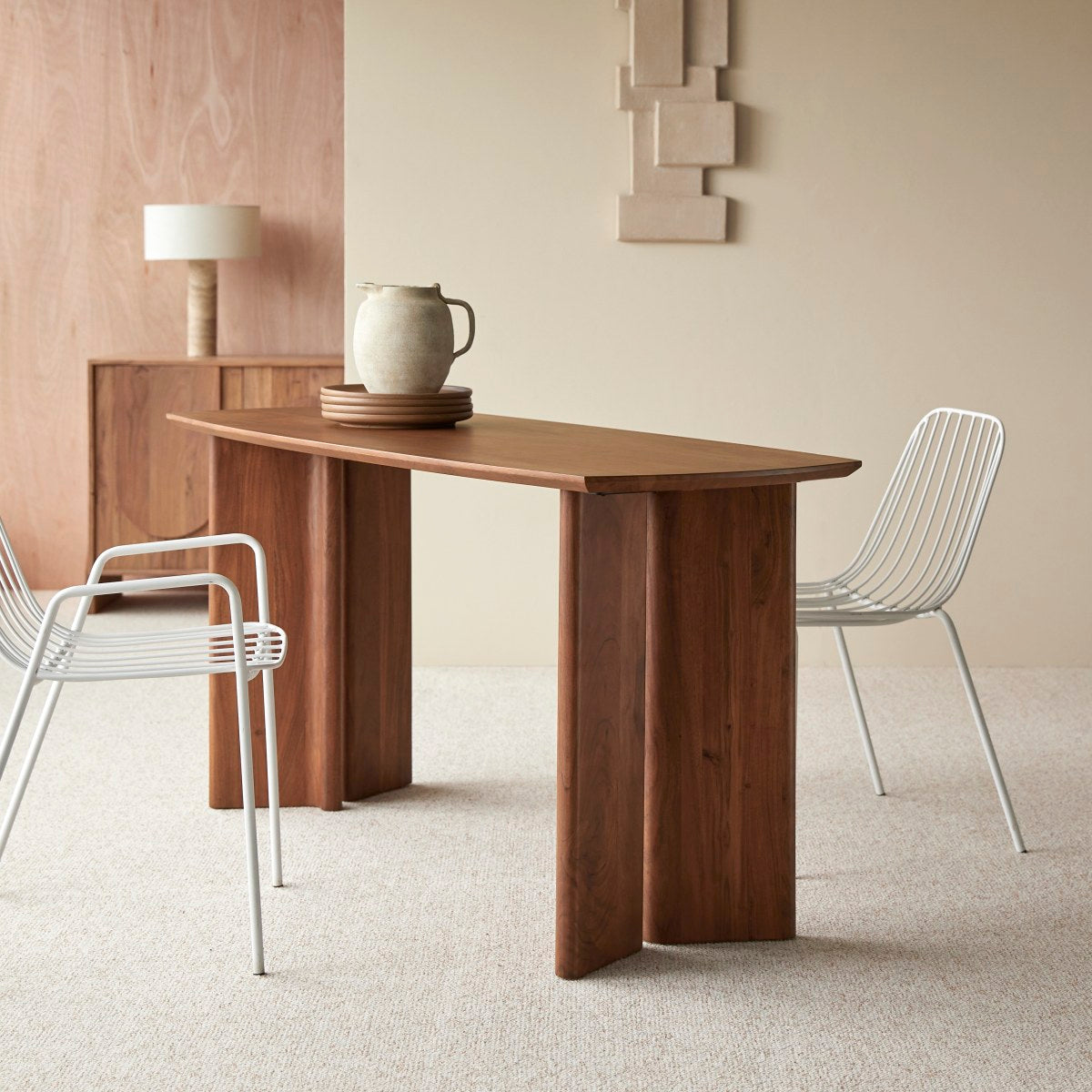 De eigentijdse, trendy lijnen en de warme kleur van het acaciahout vallen zeker in de smaak.