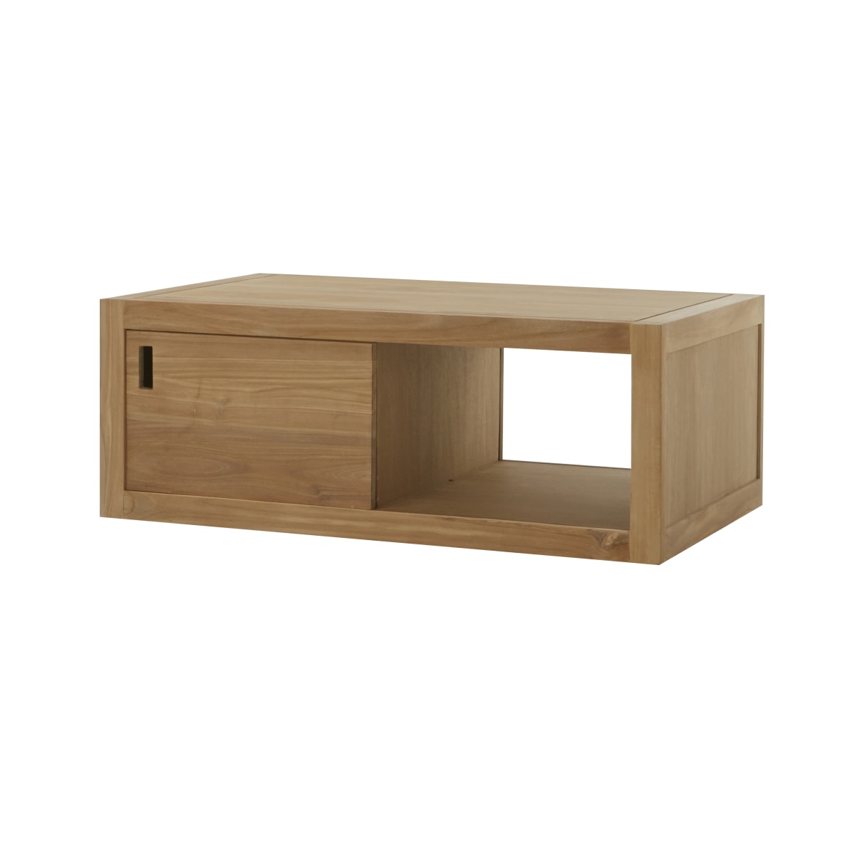 Ontdek onze Adam salontafel van onbewerkt teakhout, gemaakt in Indonesië. Met zijn eenvoudige en moderne stijl en geraffineerde lijnen zal deze teakhouten salontafel een elegante toets toevoegen. De natuurlijke beige kleur staat voor authenticiteit. Het biedt optimale opbergruimte met een open vak en 2 compartimenten achter de schuifdeuren.