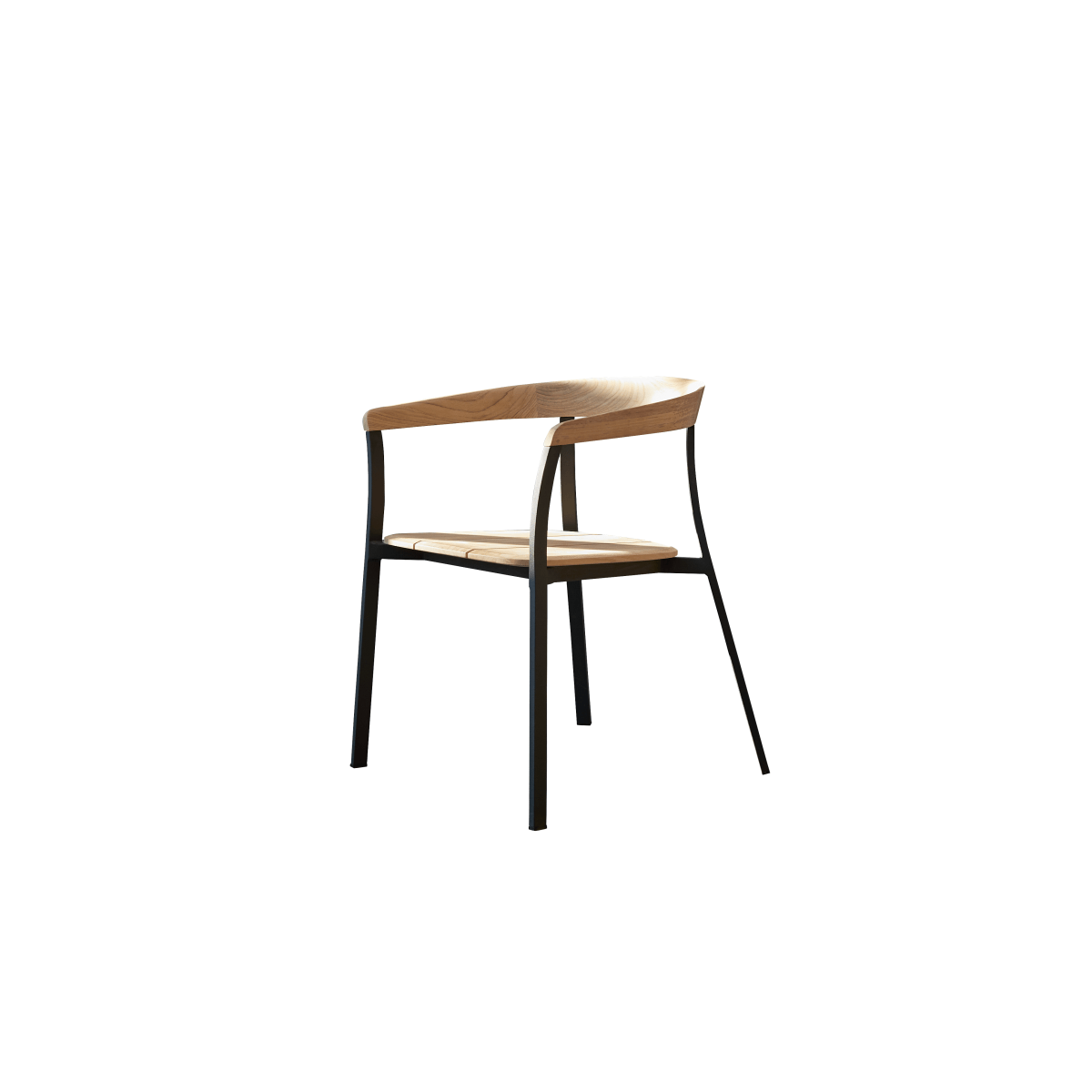De kromming van de rugleuning ontstaat door het buigen van het hout - een hoogwaardige technische prestatie - het aluminium contrasteert met het edele hout zonder ermee te botsen, en de minimalistische lijnen benadrukken het moderne, lichtgewicht ontwerp. Teak is FSC® gecertificeerd, uw garantie dat het uit duurzaam beheerde bossen komt.