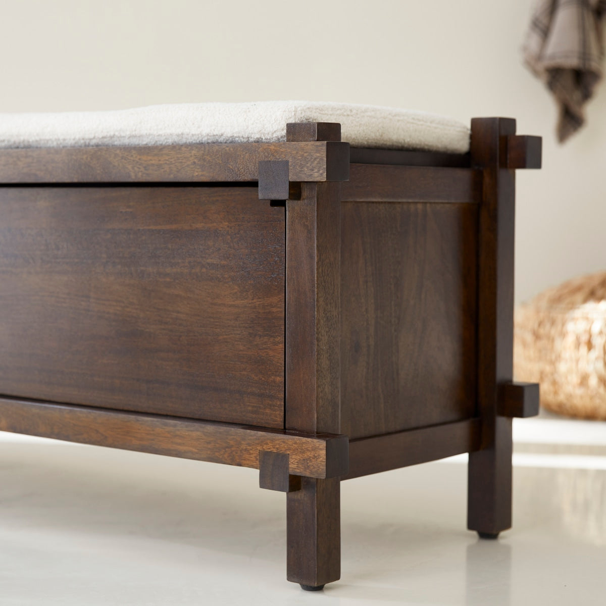 Exotische charme en prachtige genuanceerde accenten zorgen voor een geweldig effect bij de voeteneind-bank Arko in massief mangohout. Dit meubel, met zijn exotische accenten, is een geslaagde aanvulling op het bed Arko en het nachtkastje Arko om een slaapkamer te ontwerpen die uitnodigt tot reizen... zonder het huis te verlaten!Het is ook ideaal voor in de woonkamer, waar u een etnisch accent kunt toevoegen aan een bestaande inrichting of een hele nieuwe wereld kunt creëren, geïnspireerd door verre oorden. Het kan ook dienen als schoenenkast in een ruime hal of garderobe: heel handig, door het grote kussen om schoenen aan te trekken terwijl u zit!Het massieve mangohout is gelakt voor dagelijks gebruiksgemak.