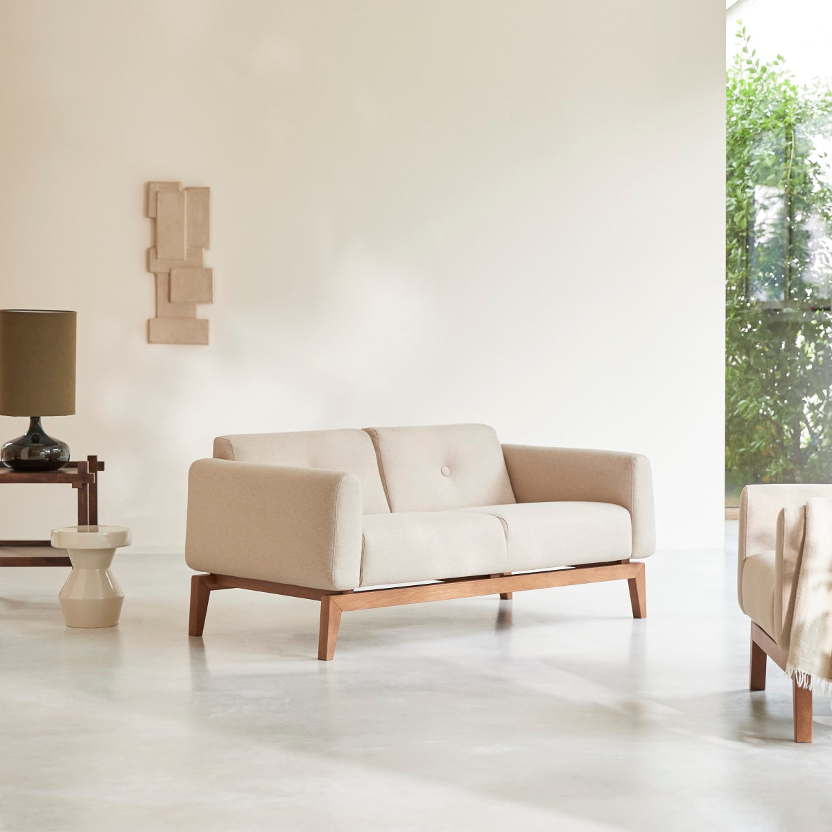 Ontdek de 2-zitsbank in eiken hout en ecru stof van het merk Tikamoon!