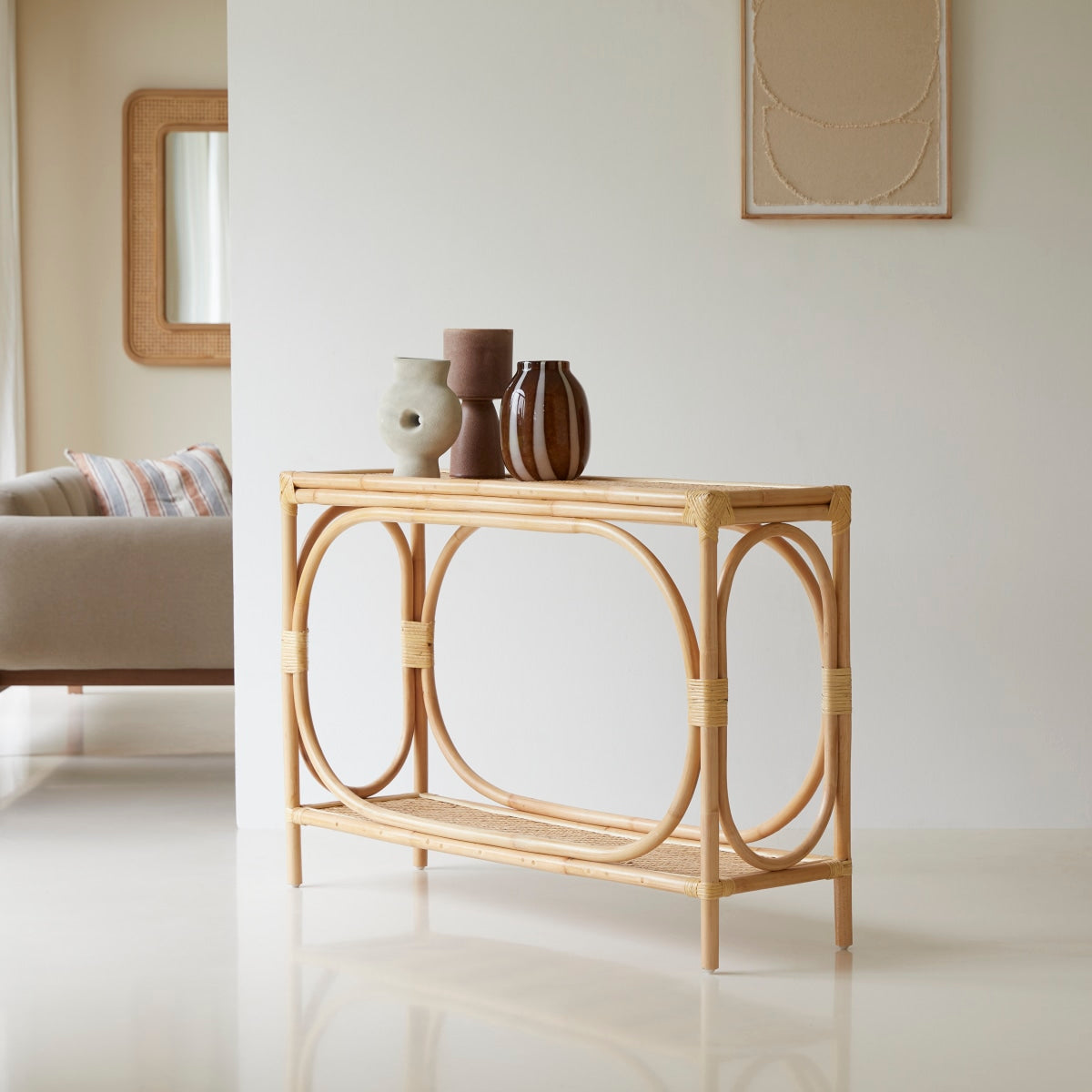Ontdek de gelakte Ella bijzettafel in rotan van Tikamoon!