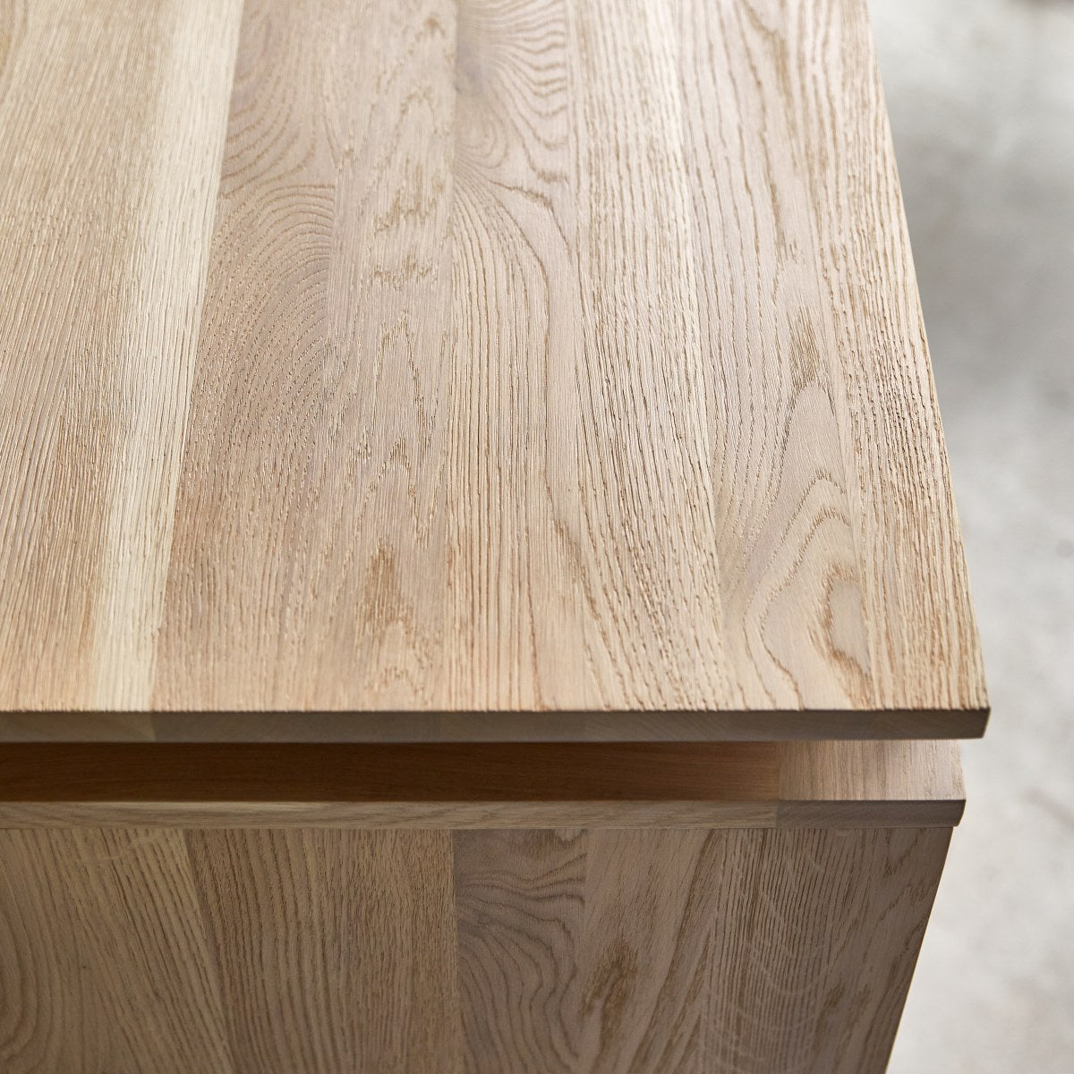 Het massief eikenhouten buffet is ook verkrijgbaar in een lange uitvoering van 220 cm. Als de afwerking van dit prachtige meubel u bevalt, raden we u aan onze hele Bodi-collectie in massieve eikenhoutte ontdekken.